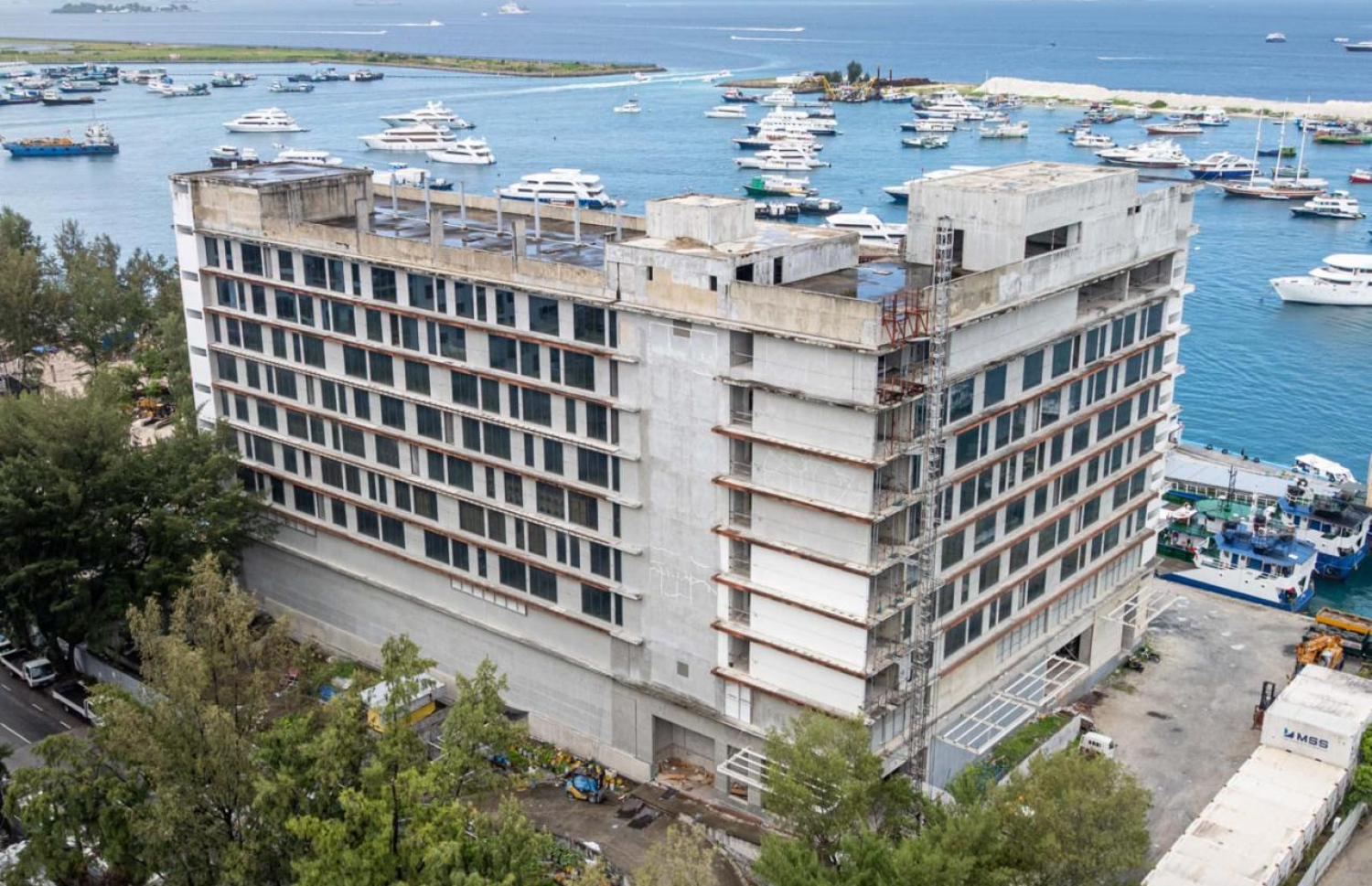 The City Hotel project began in 2008 under a partnership with the US-based Carlson Hotel Group. Construction commenced in 2012 and cost approximately MVR 115 million. However, work was halted midway, and despite several attempts over the past decade to revive or lease the project, STO eventually abandoned the site.