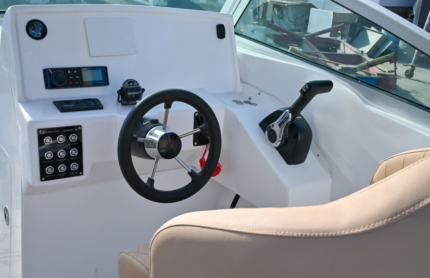 The Al Shaali Marine Canary 28 model is a 28 foot sports speedboat, and is the same one being offered by Dhiraagu. It is currently sitting at the Thilafushi boat yard after all preparations were completed.
