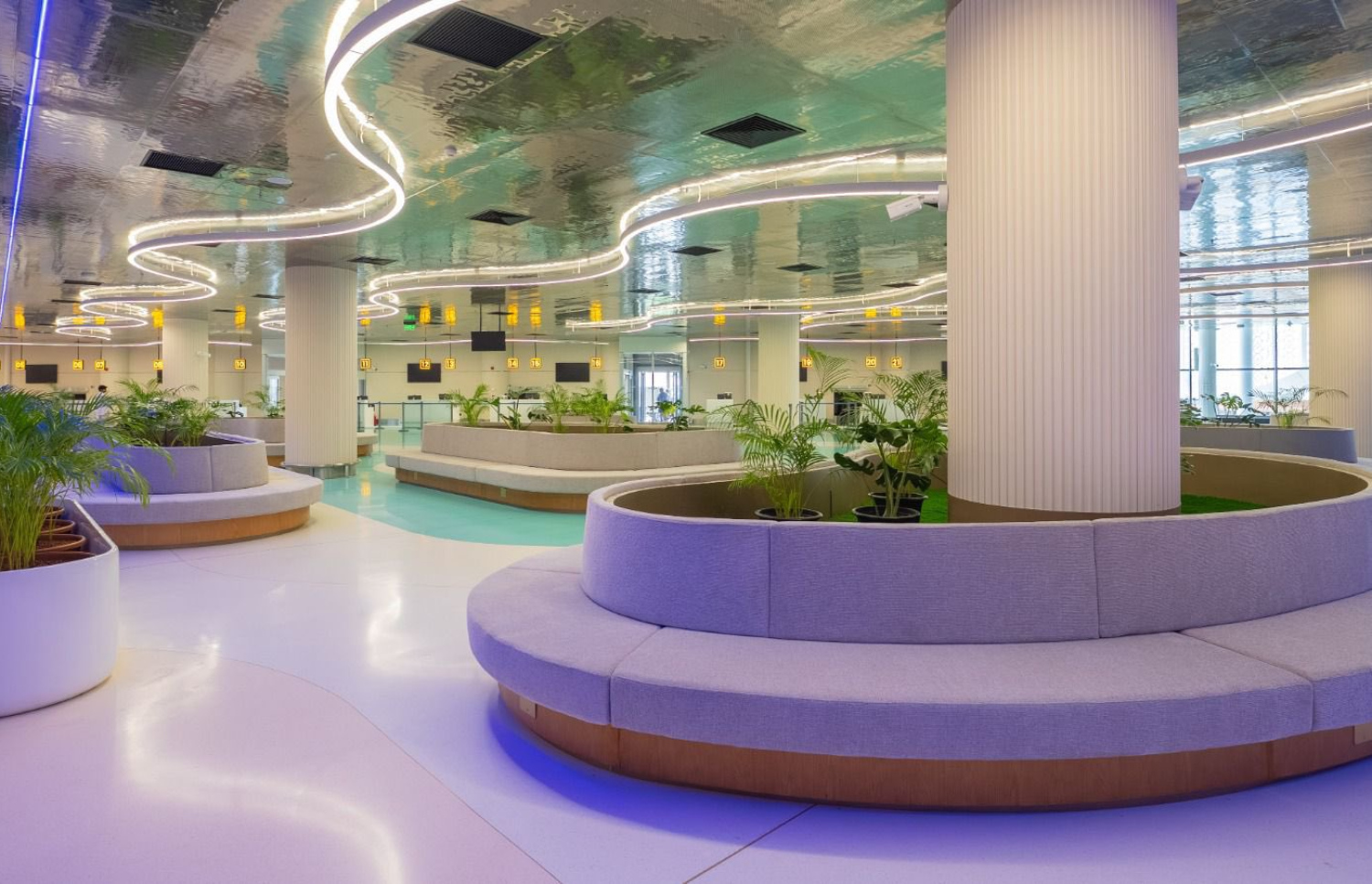 The seaplane check-in counters at Terminal 1 are located in the area adjacent to the Arrival gate. Passengers will then be taken to the Noovilu seaplane terminal from this area.