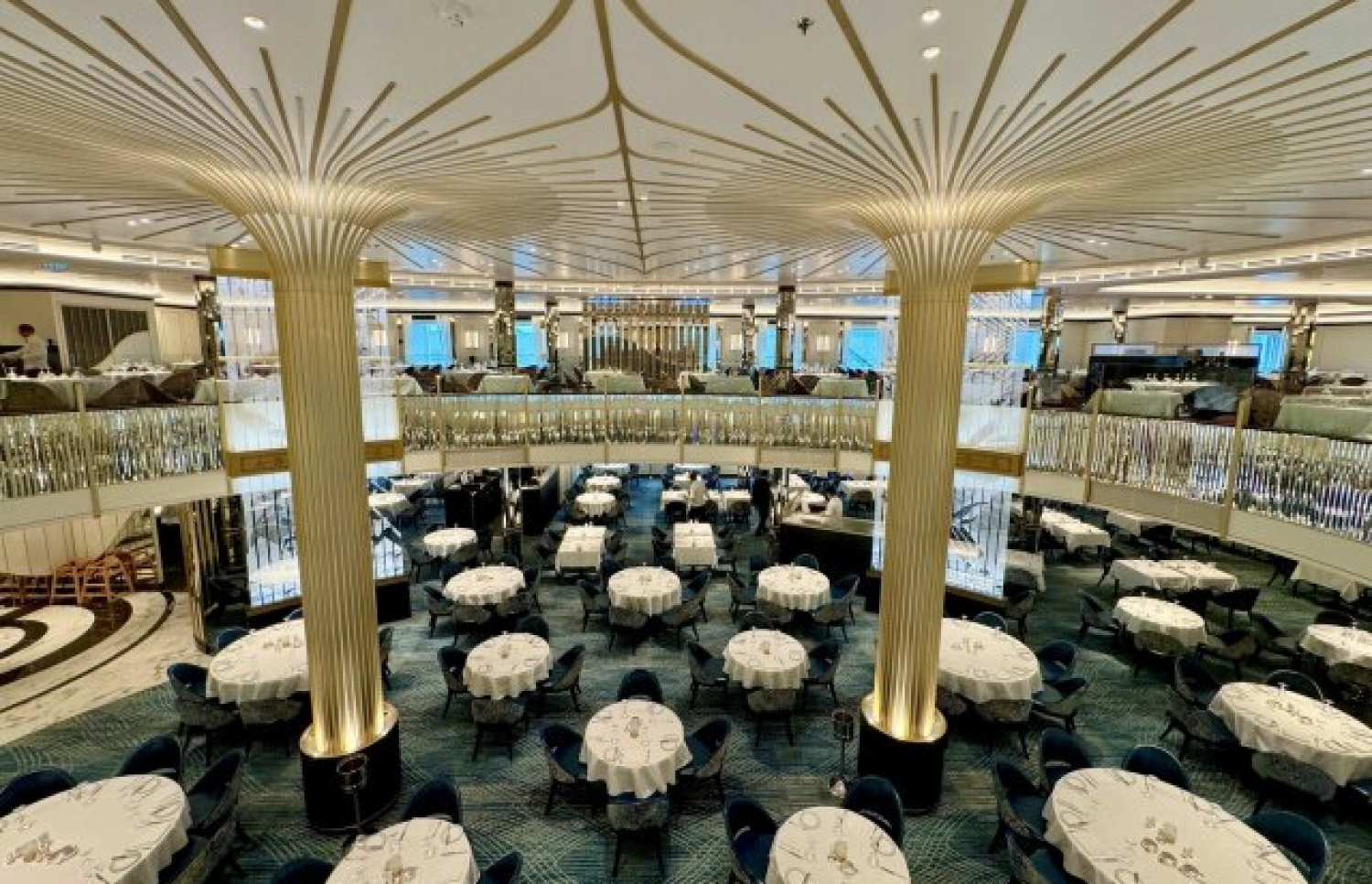 The ship is staffed by about 1,200 crew members and features 11 restaurants offering a wide range of international cuisines, including Mediterranean, Japanese and Italian.