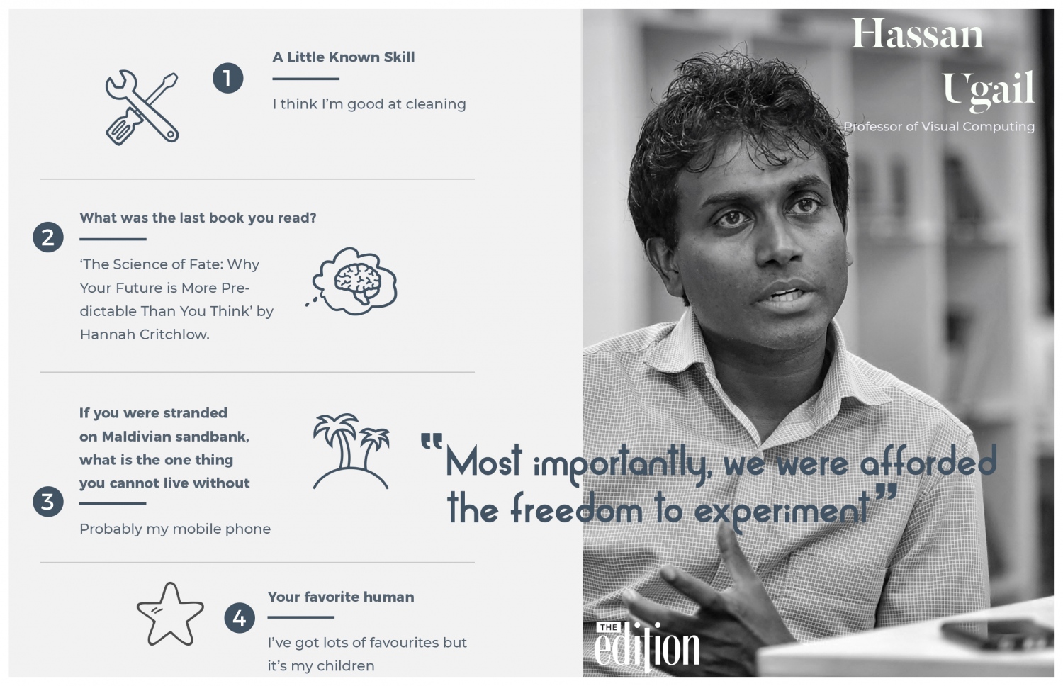 It would not be far from the truth to claim Professor Hassan Ugail as one of the most well respected Maldivians to have been born from the archipelago with regards to science and technology.