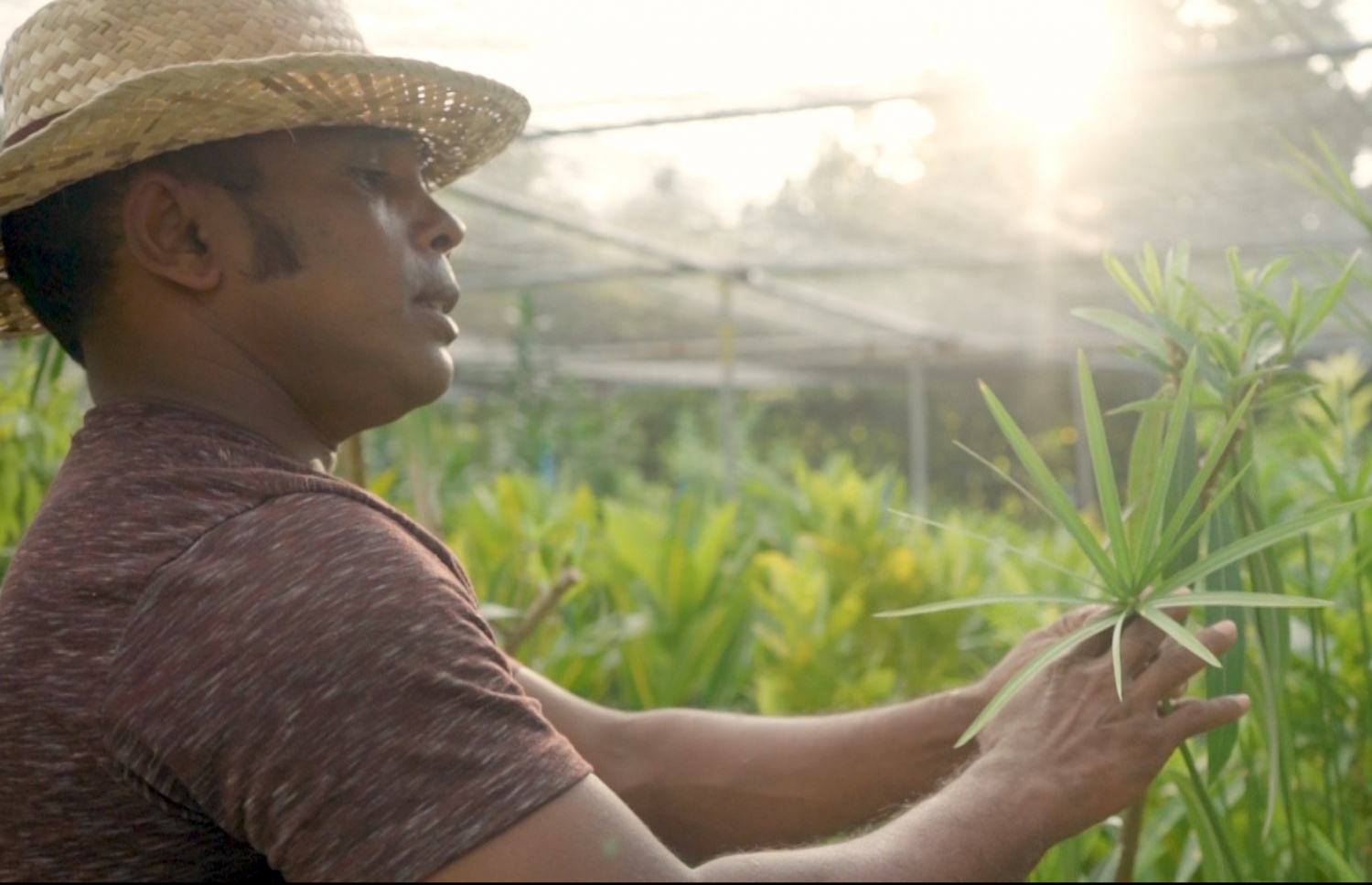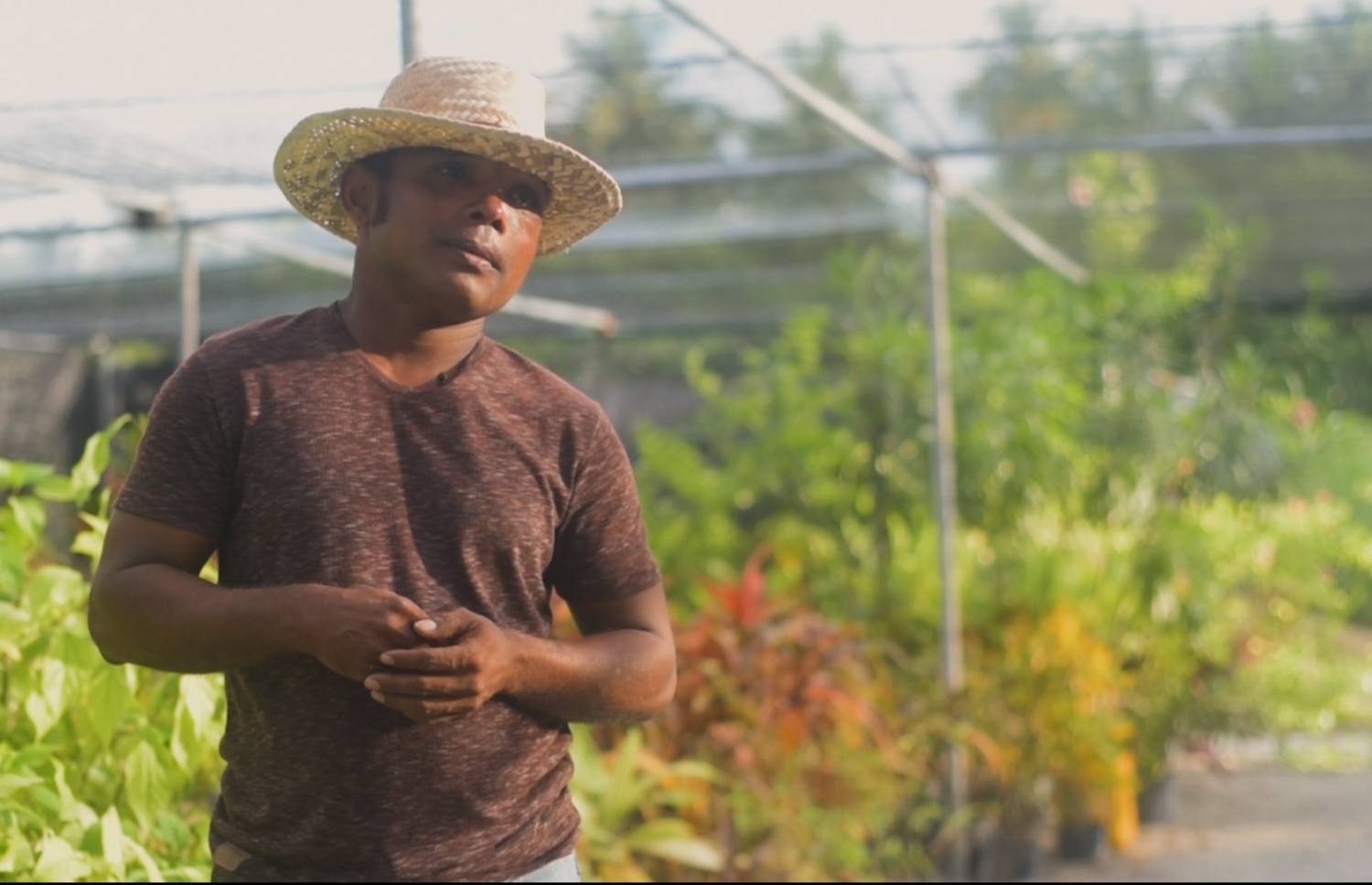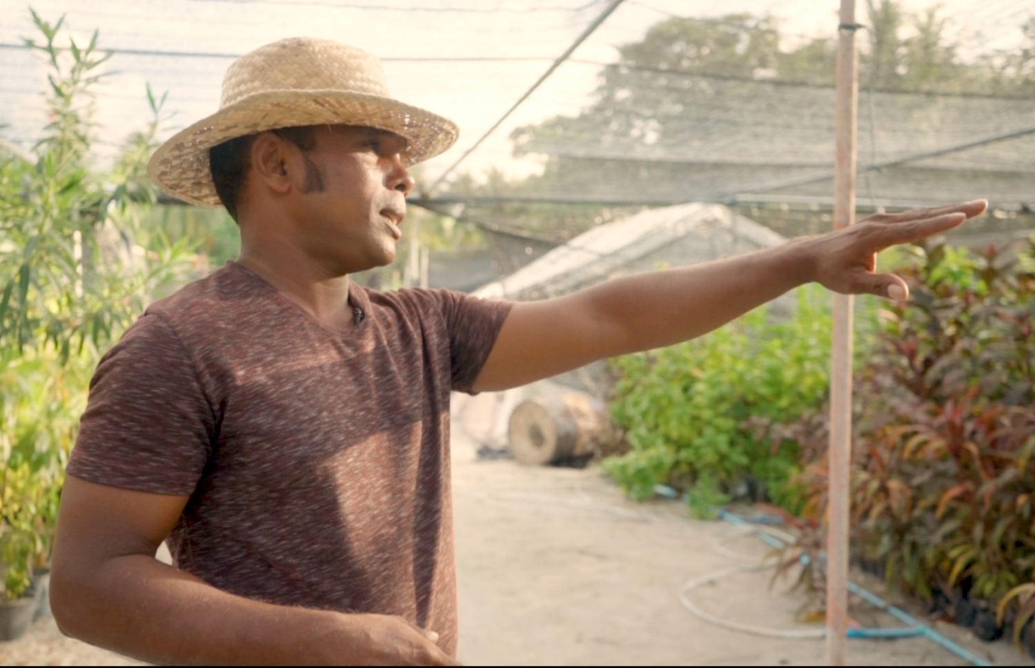 Abdul Bari gently caresses a leaf, as he walks us through his vast gardens, describing how he grows his saplings, then introduces them to the market space to be sold to resorts.