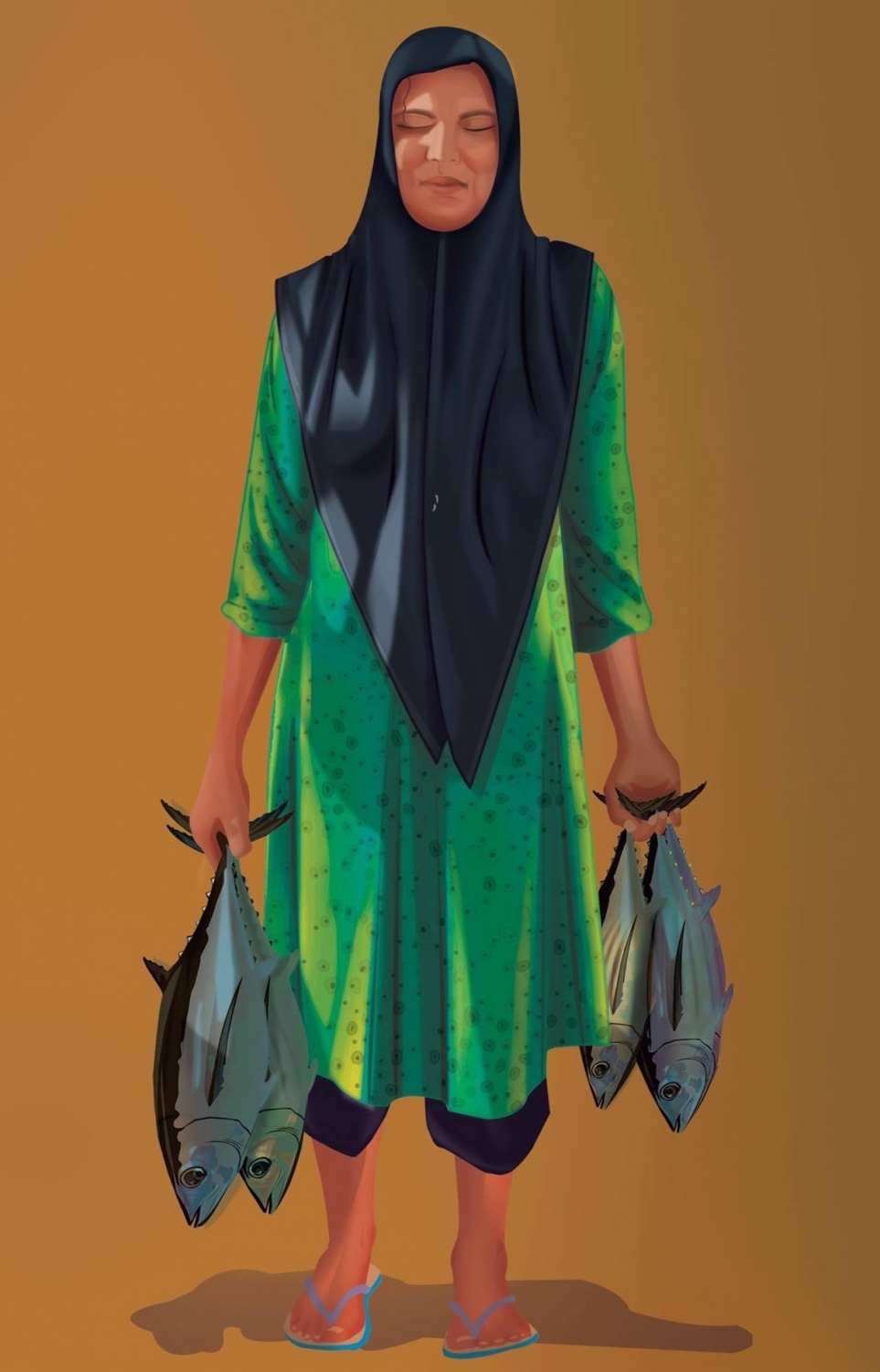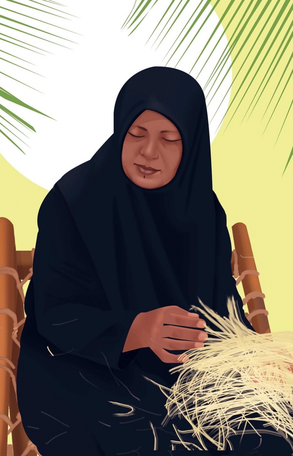 Within my extended family, Aunt Khadheeja was one of the closest relatives - a soft-spoken, kind and incredibly generous person. She and her husband lived on Hulhudheli, a small island of fewer than 1,000 inhabitants, in Dhaalu atoll. He went out to sea to catch yellowfin tuna, while she worked from home to support the family, by cooking fish, weaving palm thatch, and making coir-rope.