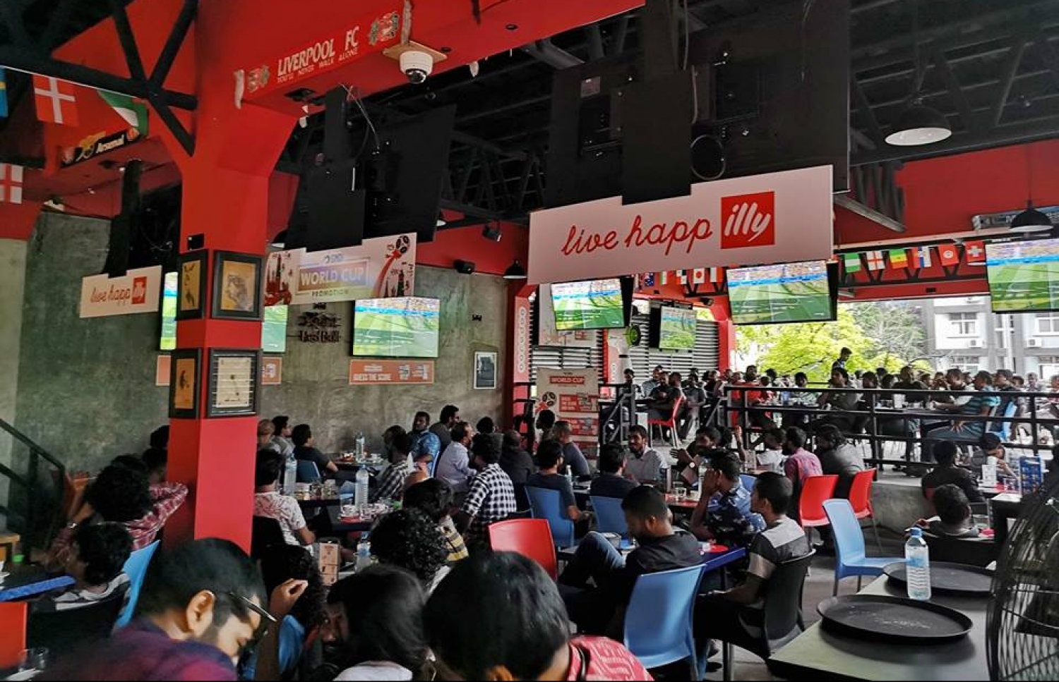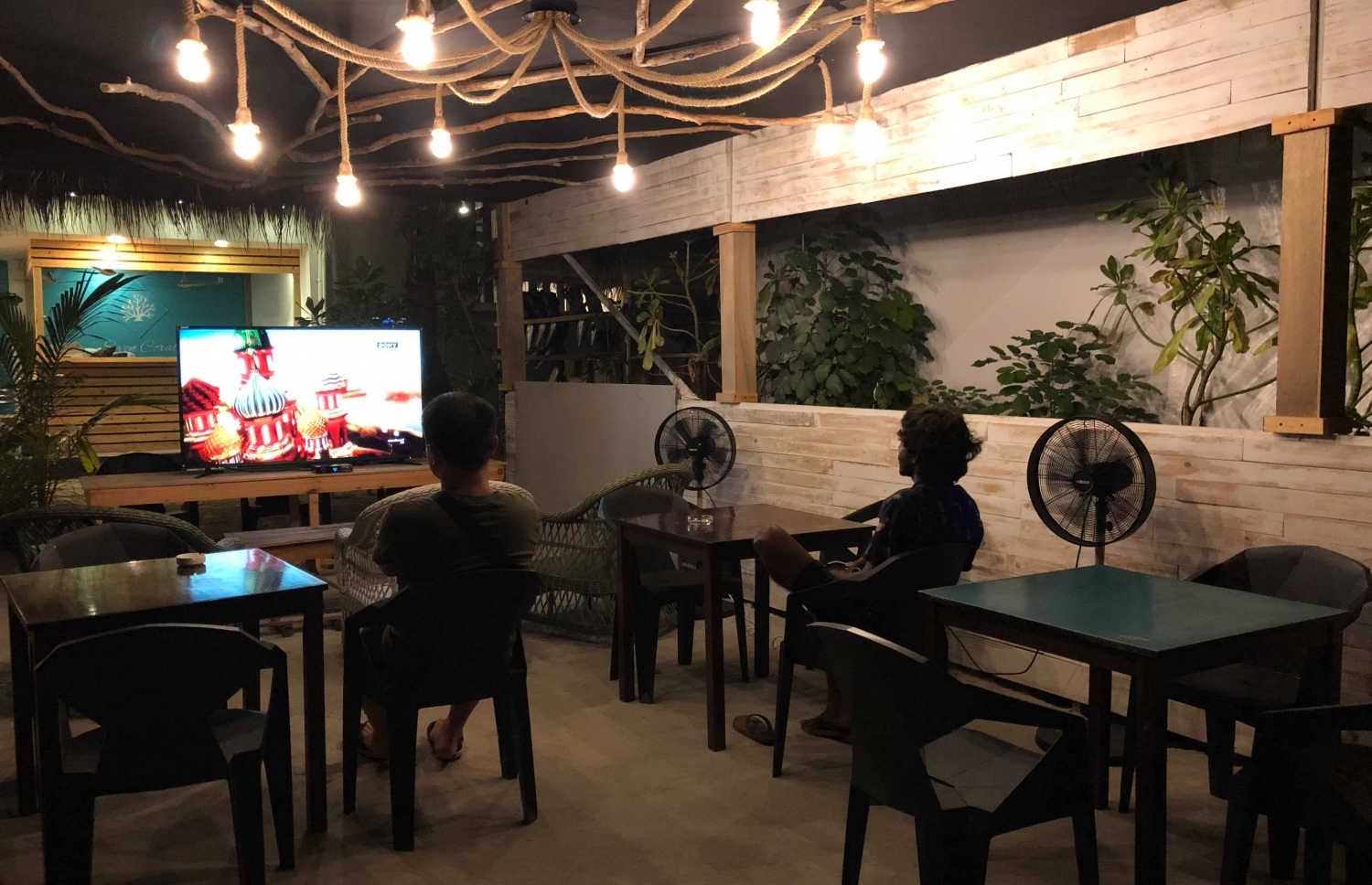One of the most popular choices is the massive screen at Social Centre in Maafannu, where many food stalls are found around the area. It has been frequented by a loyal crowd for many years, during various sporting events, it is nearly always quite crowded.