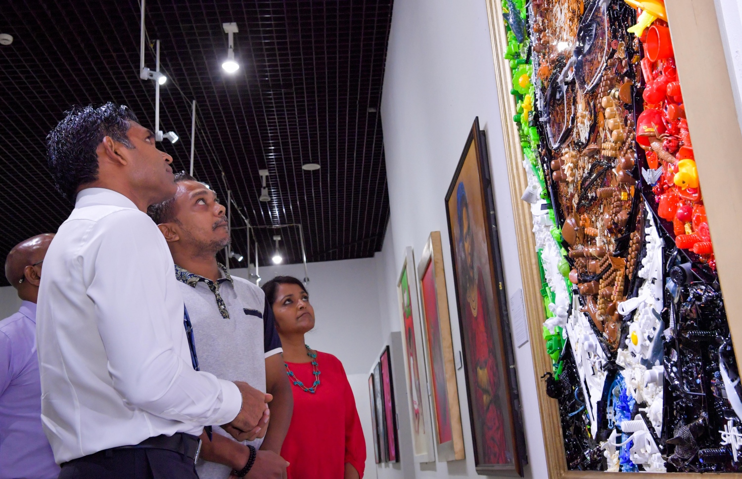 President Ibrahim Mohamed Solih, First Lady Fazna Ahmed and Vice President Faisal Naseem visited the ongoing art exhibition 'Unveiling Visions 2019'.
