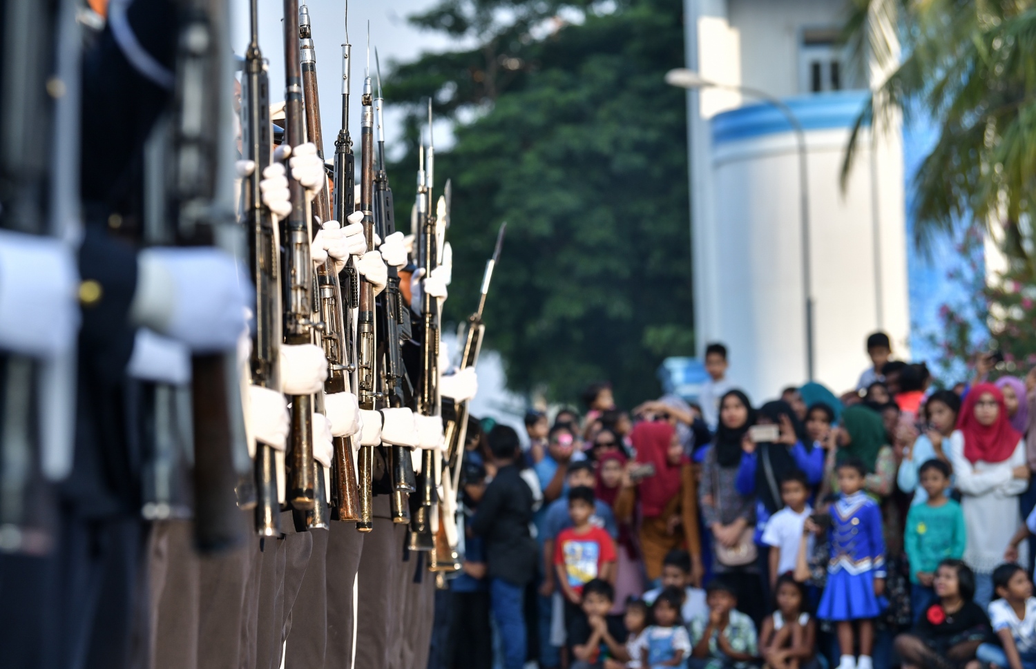 Male City, November 3, 2018: People gathered to watch the musical drill held by MNDF soldiers at the Republic Square to mark Victory Day. PHOTO: NISHAN ALI/MIHAARU