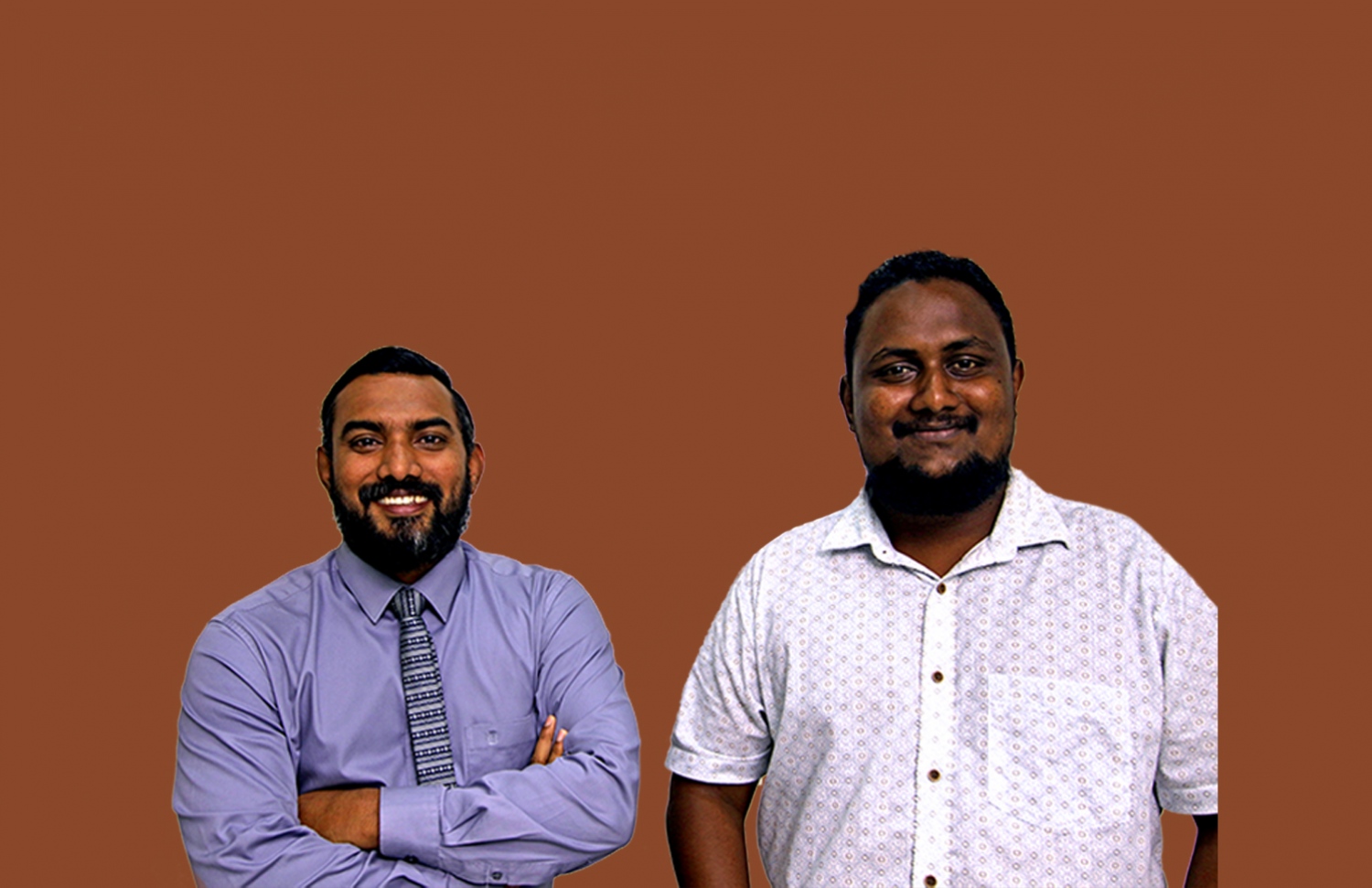 Transparency Maldives (TM)'s Senior Project Coordinator on Human Rights and former Vice President of the Human Rights Commission of Maldives, Ahmed Tholal (L) and TM's Executive Director Aiman Rasheed. PHOTO: AHMED AIHAM / THE EDITION