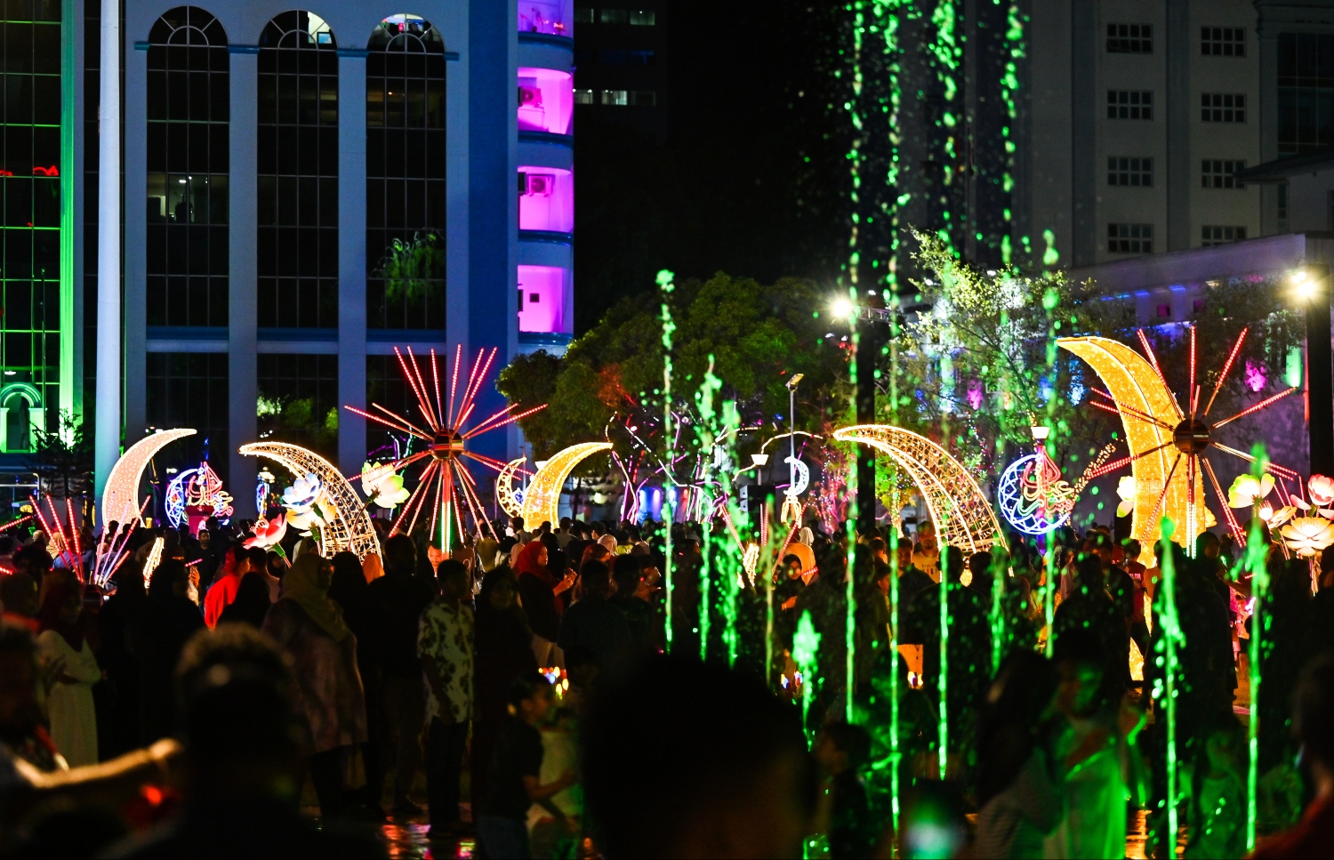 The entire Republic Square is the sea of floral designed lights under the 'Eid Ali' initiative. -- Photo: Fayaz Moosa / Mihaaru