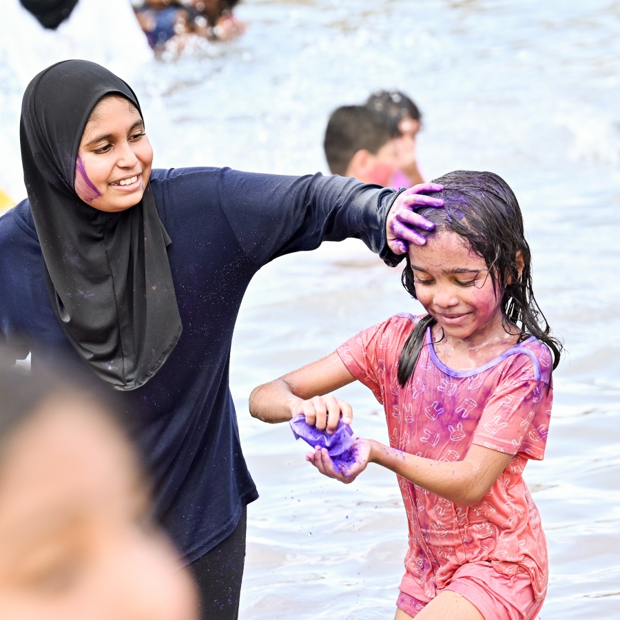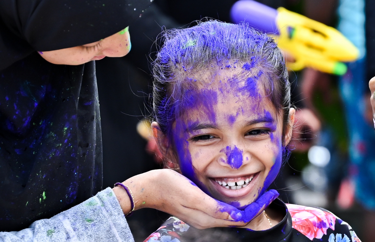 Covered in colours.-- Photo: Nishan Ali / Mihaaru