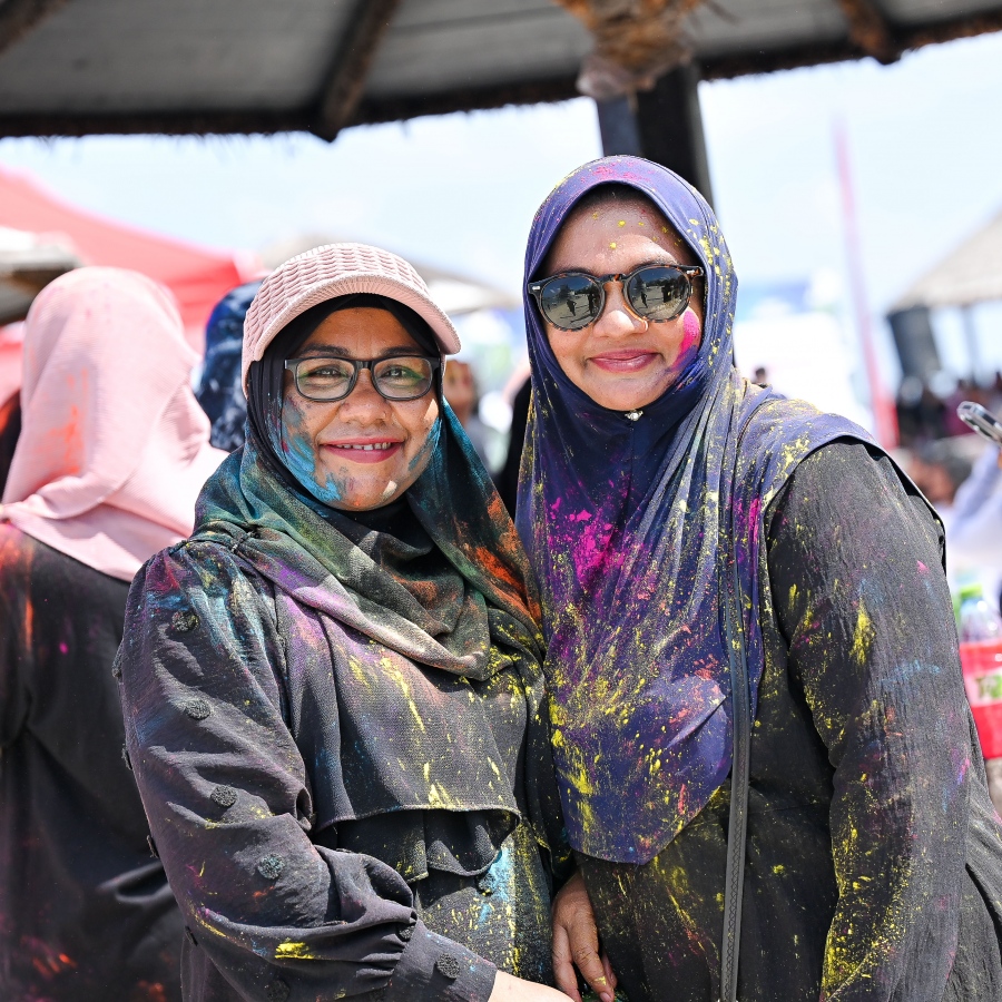 Posing for a pic, covered in colours.-- Photo: Nishan Ali / Mihaaru