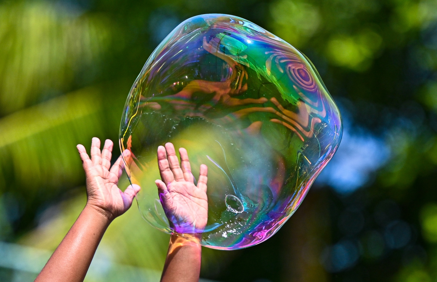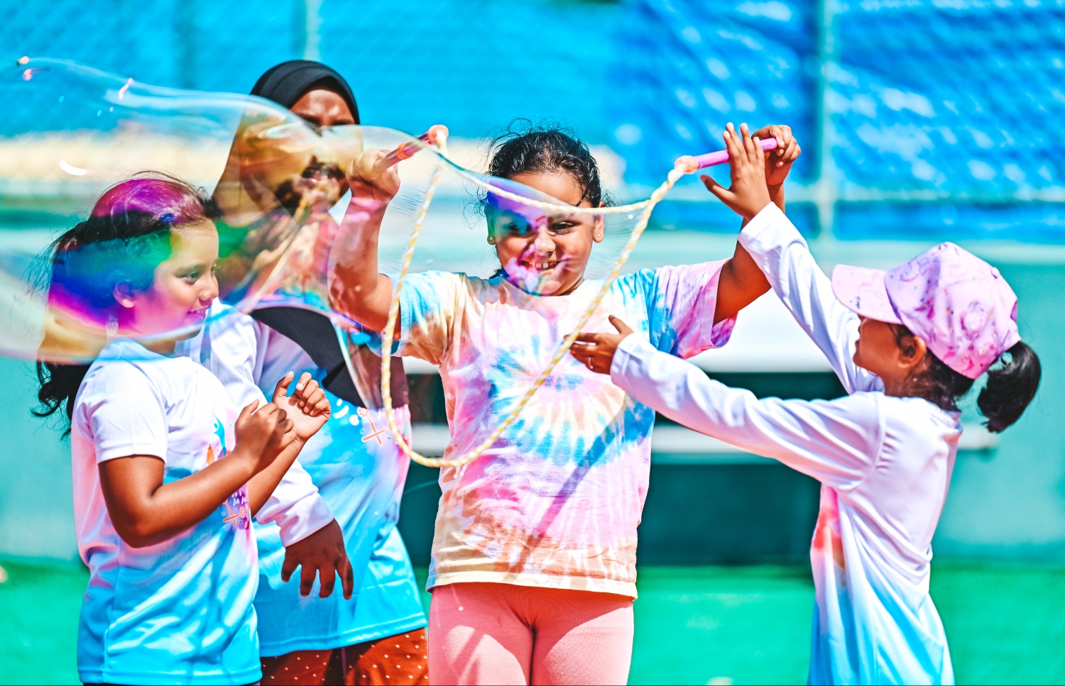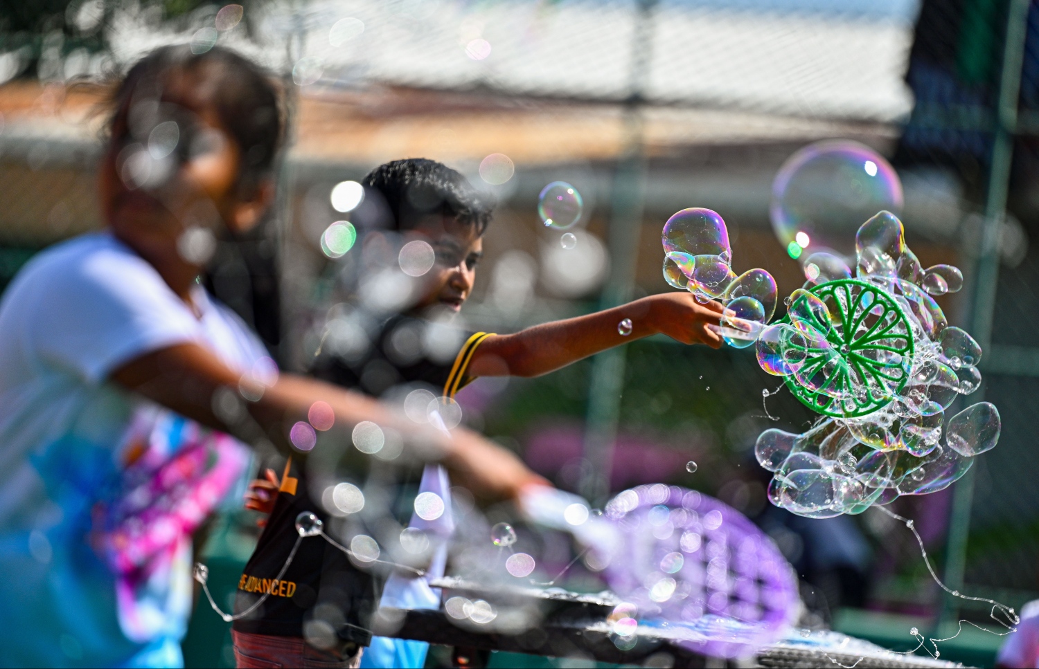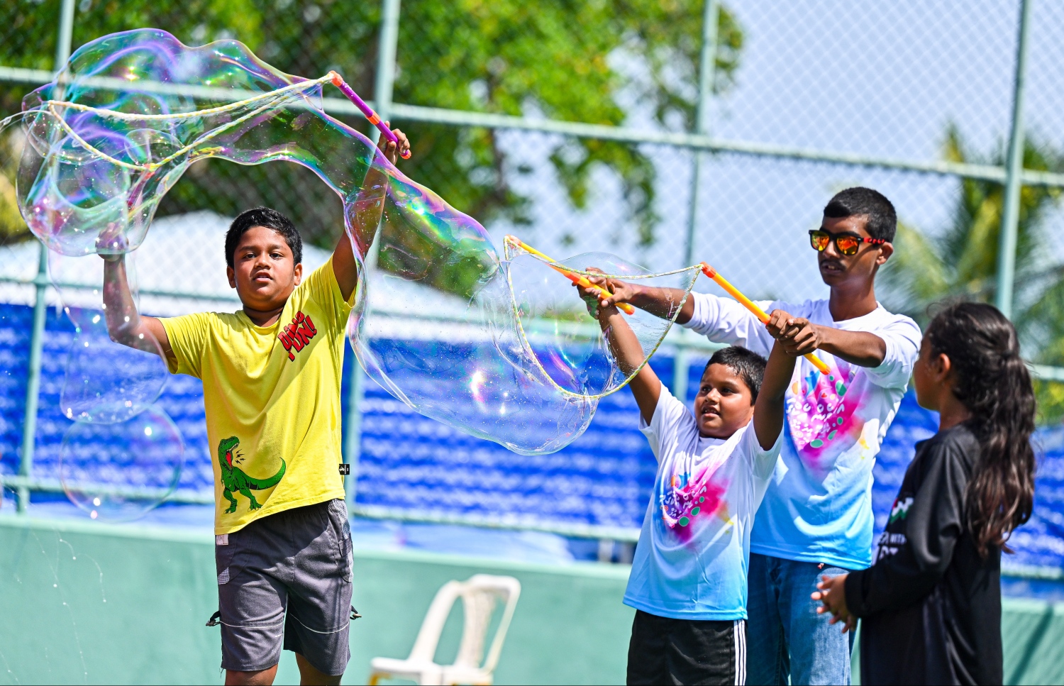 Children blowing bubbles at the Bubble Show held for children in Baa Kendhoo Volleyball Court to colorfully celebrate Eid-al-Adha festivities. -- Photo: Fayaz Moosa / Mihaaru News