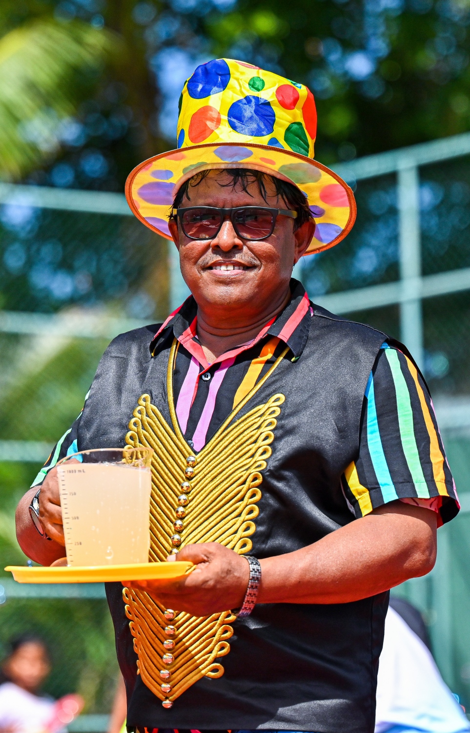 Magician Mohamed Shareed joining the Bubble Show held in Baa Kendhoo Volleyball Court to colorfully celebrate Eid-al-Adha festivities with children. -- Photo: Fayaz Moosa / Mihaaru News
