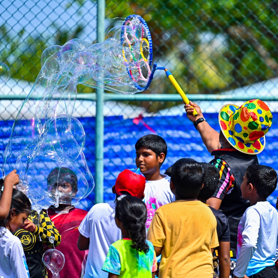 A Bubble Show was held today for children at the Baa Kendhoo Volleyball Court to celebrate Eid-al-Adha, which saw the participation of countless children in the island. Many such activities are planned in Kendhoo to host Eid festivities at a grand and bold level.