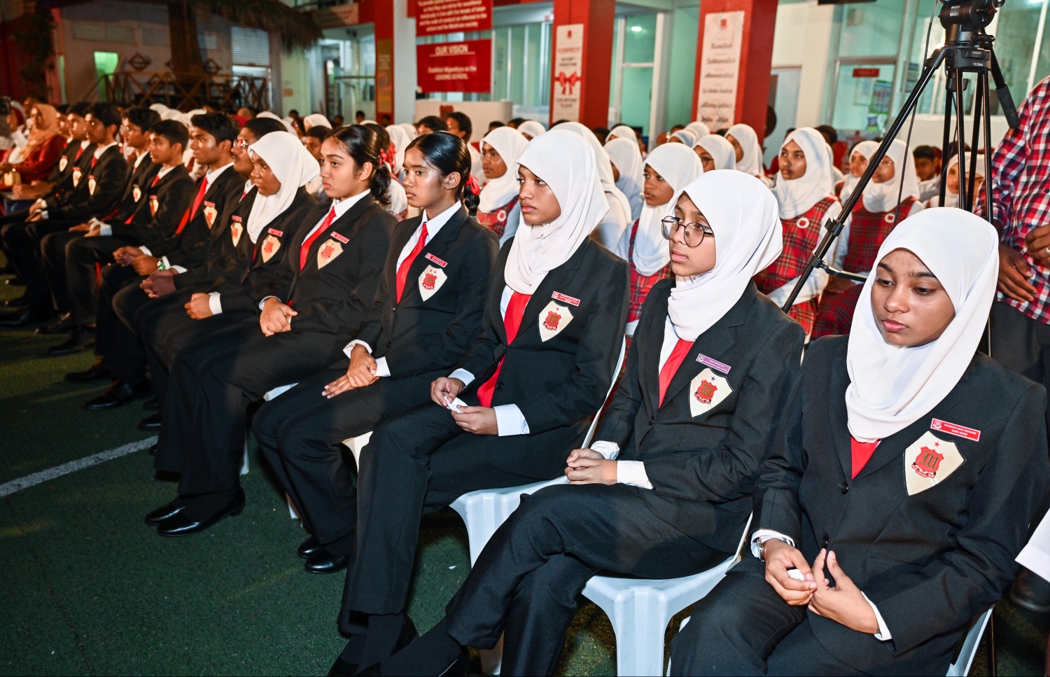 Students of Majeedhiyya School in attendance at the special ceremony held at the school to initiate a 1000-day countdown to its 100th year anniversary. -- Photo: Fayaz Moosa / Mihaaru News