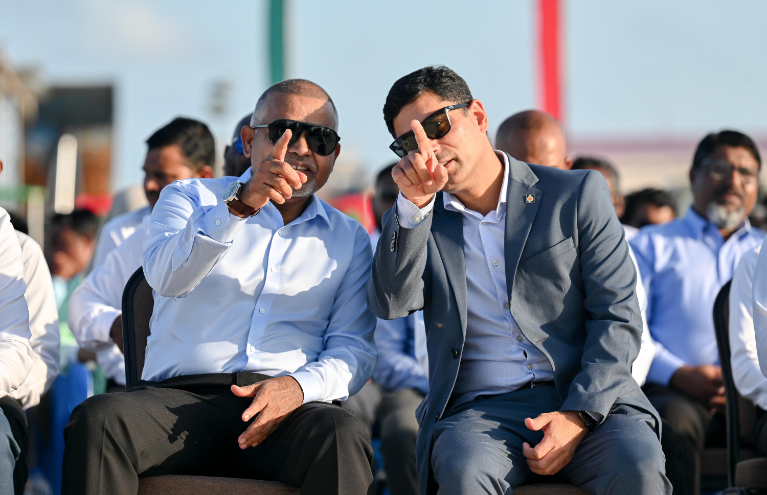 Minister of Economic Development and Trade Mohamed Saeed and STO MD Shimaadh Ibrahim at the inauguration of international bunkering services, held at HA. Hoarafushi.-- Photo: Nishan Ali / Mihaaru
