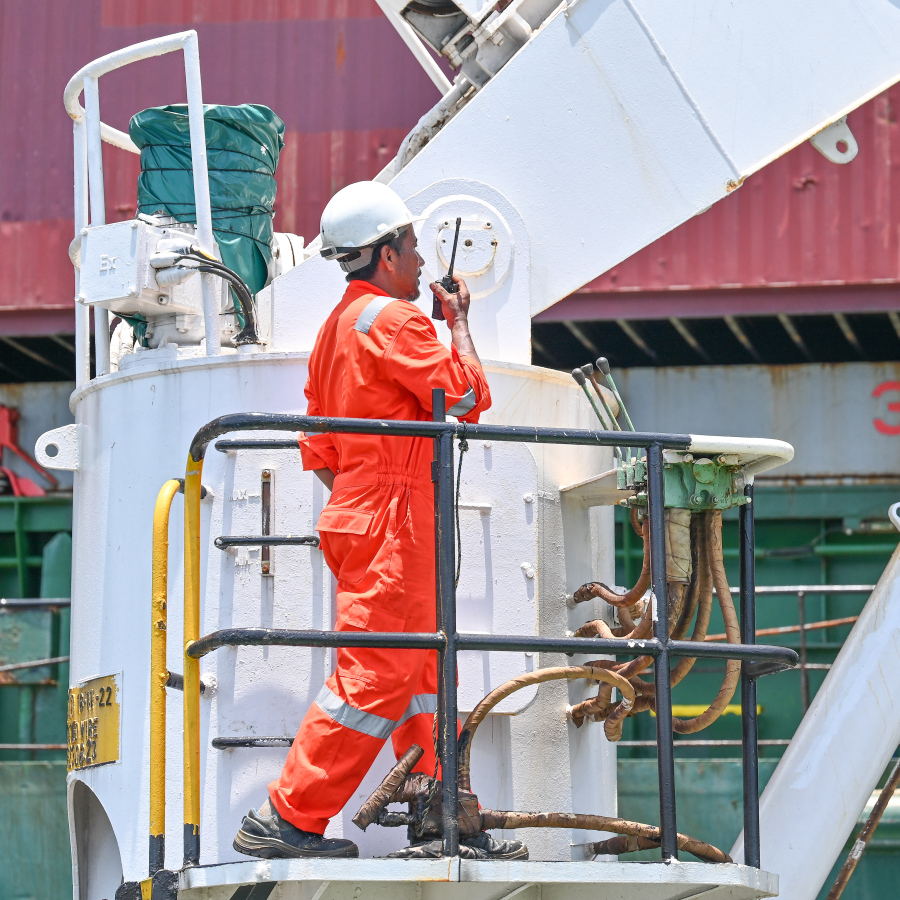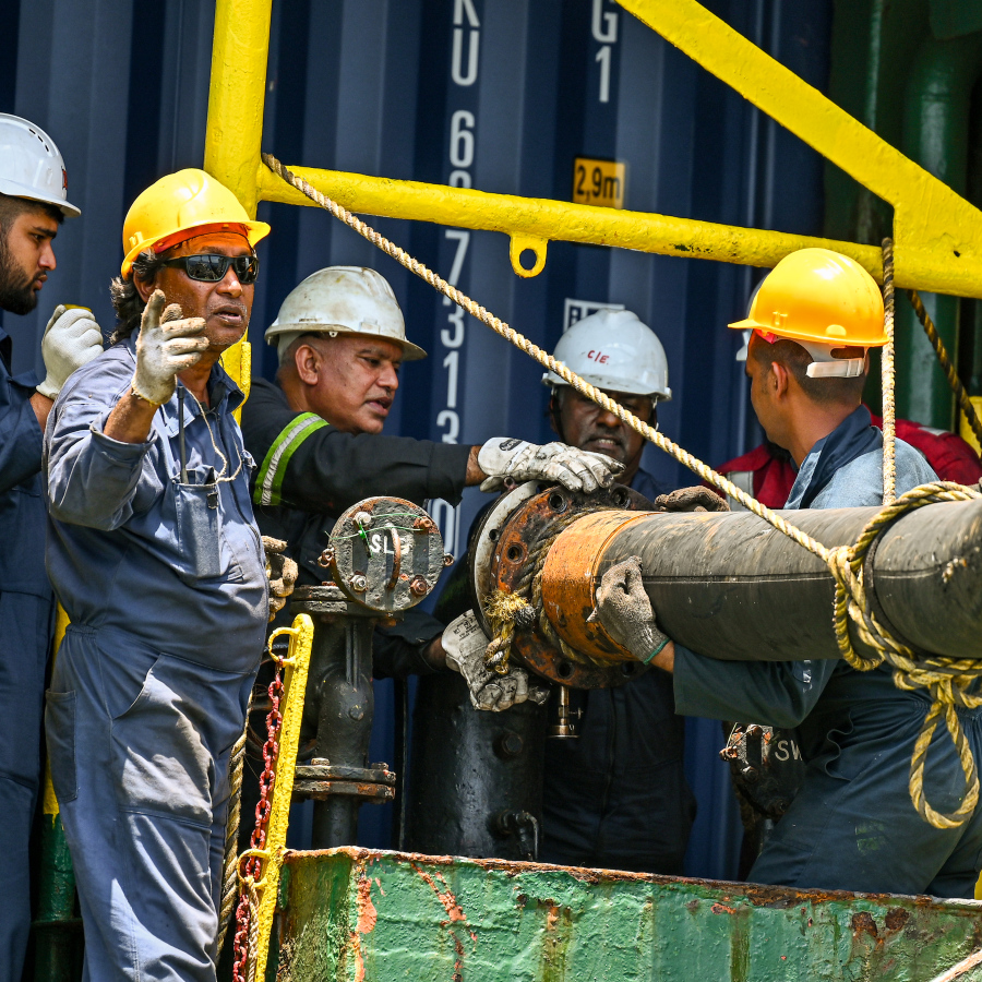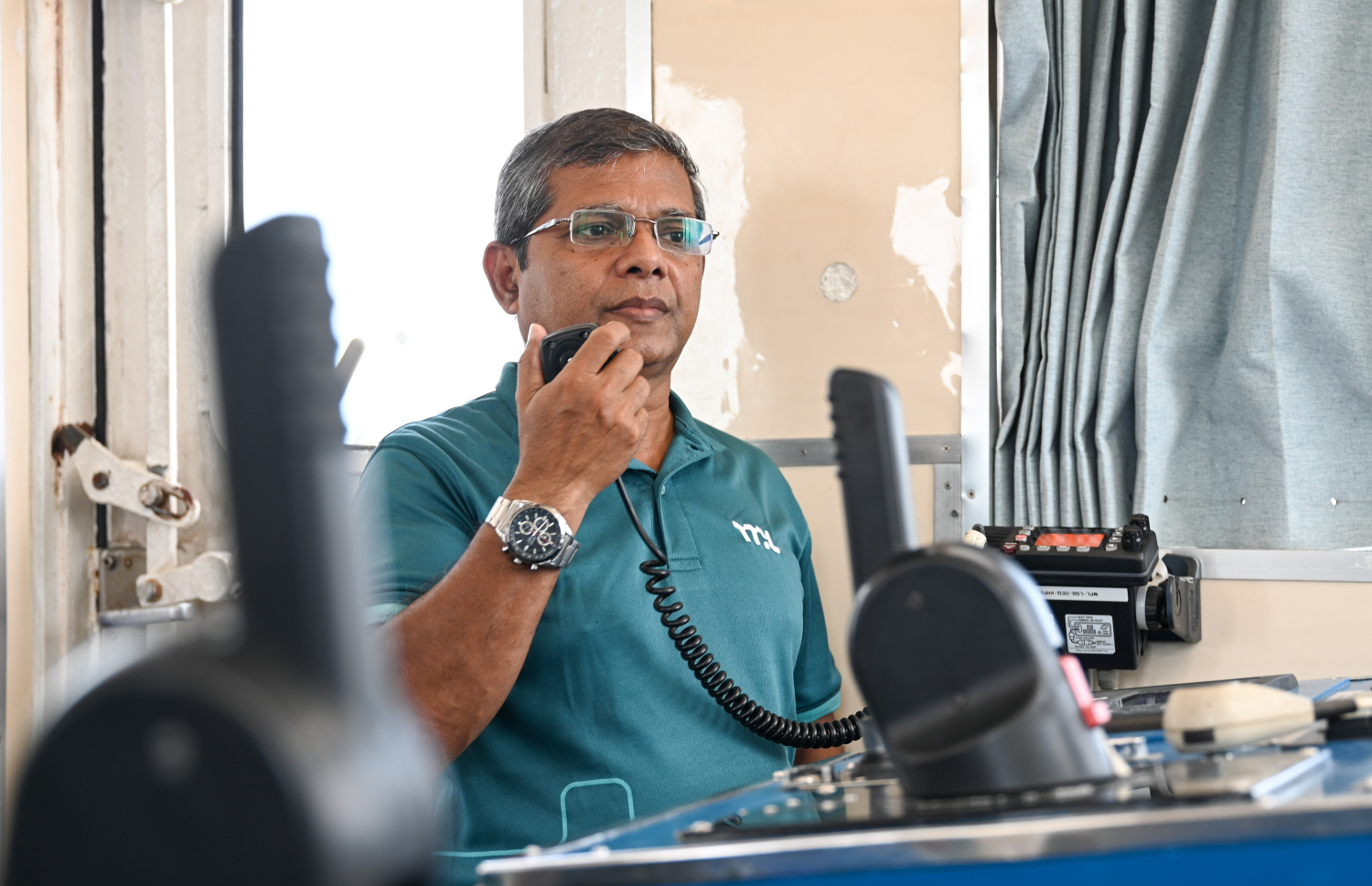 MPL Hub Master Hassan Zareer giving instructions for bunkering service.-- Photo: Nishan Ali / Mihaaru