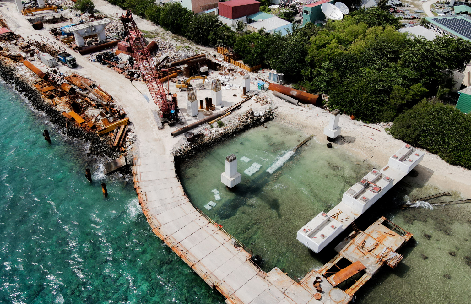Thilamalé Bridge work in progress. The super structures are now being laid out -- Photo: Nishan Ali | Mihaaru