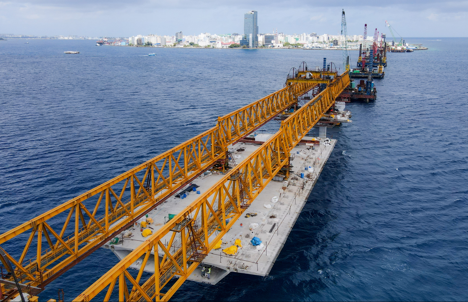 Malé - 24th October, 2024: The super structures of the Thilamalé Bridge connecting Malé, Villimalé, Gulhifalhu, and Thilafushi are being laid out: This is a significant progress in the bridge development -- Photo: Nishan Ali | Mihaaru