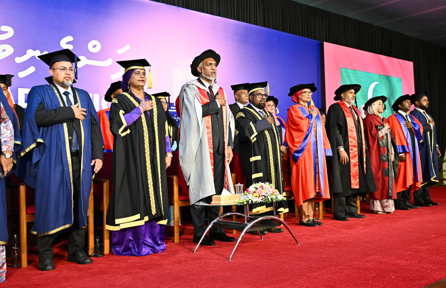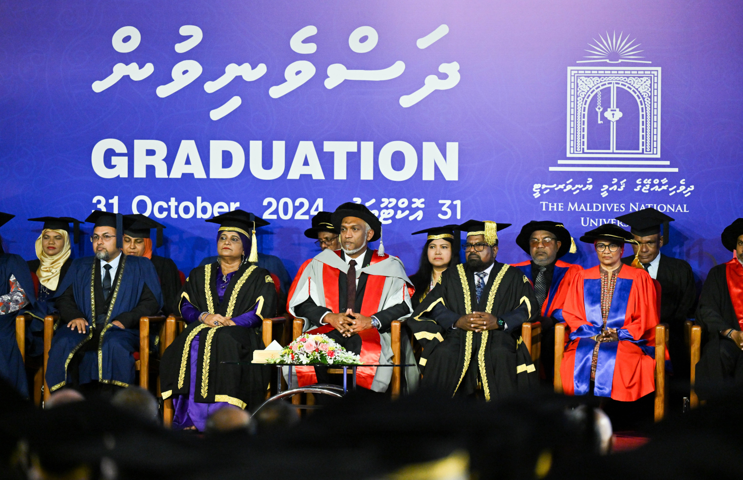 President Dr Mohamed Muizzu and and senior officials of the Maldives National University attending the ceremony -- Photo: President' Office