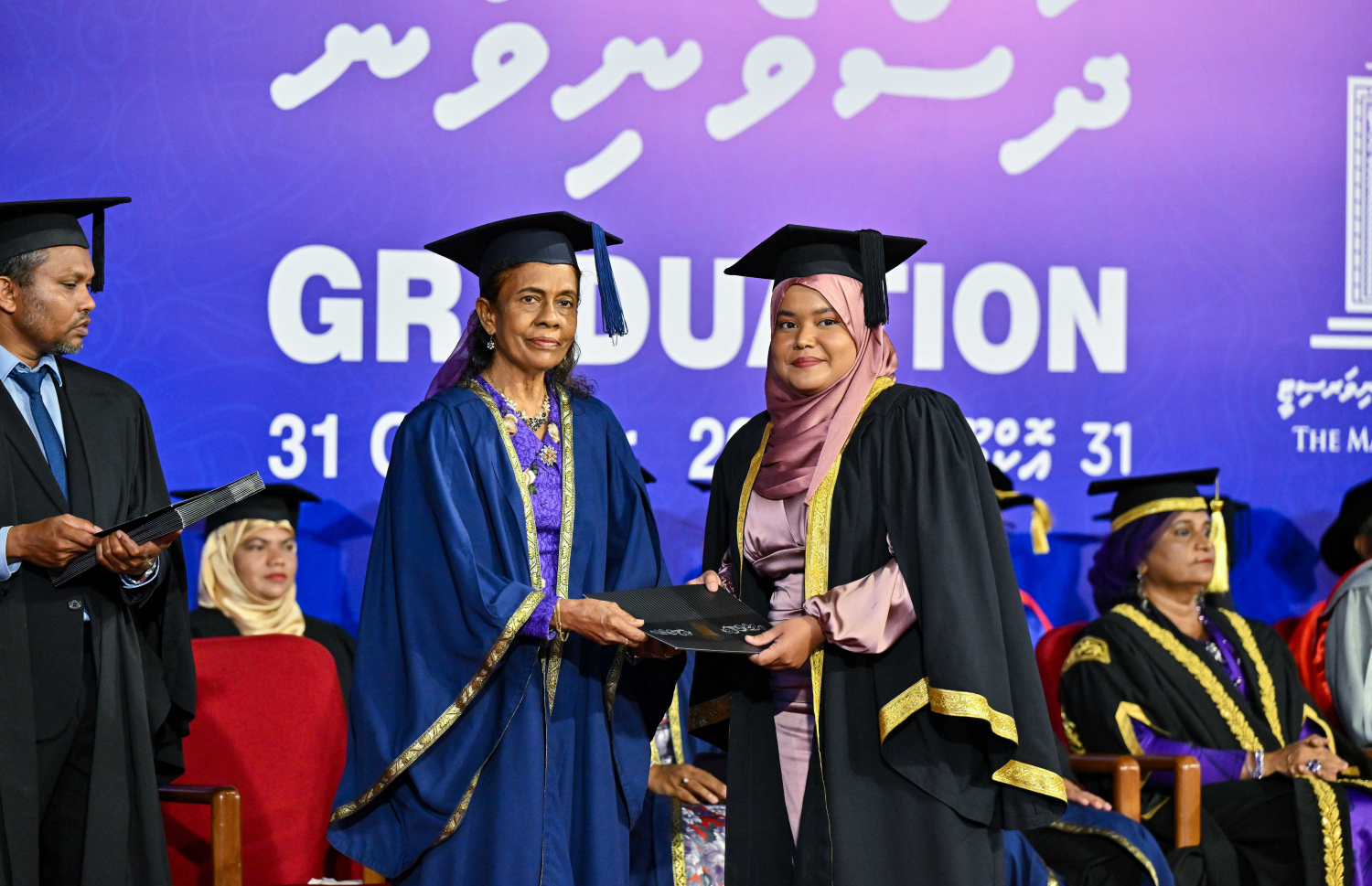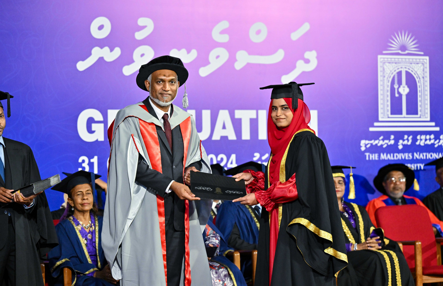 Malé - 31st October 2024: This year's graduation ceremony of Maldives National University (MNU). The first batch of 22 MBBS students were awarded graduation certificates at the ceremony by President Dr. Mohamed Muizzu. MNU commenced MBBS classes in September of 2018, in collaboration with Kebangsaan University Malaysia. A total of 311 students graduate at the ceremony today, including those from other faculties -- Photo: President's Office