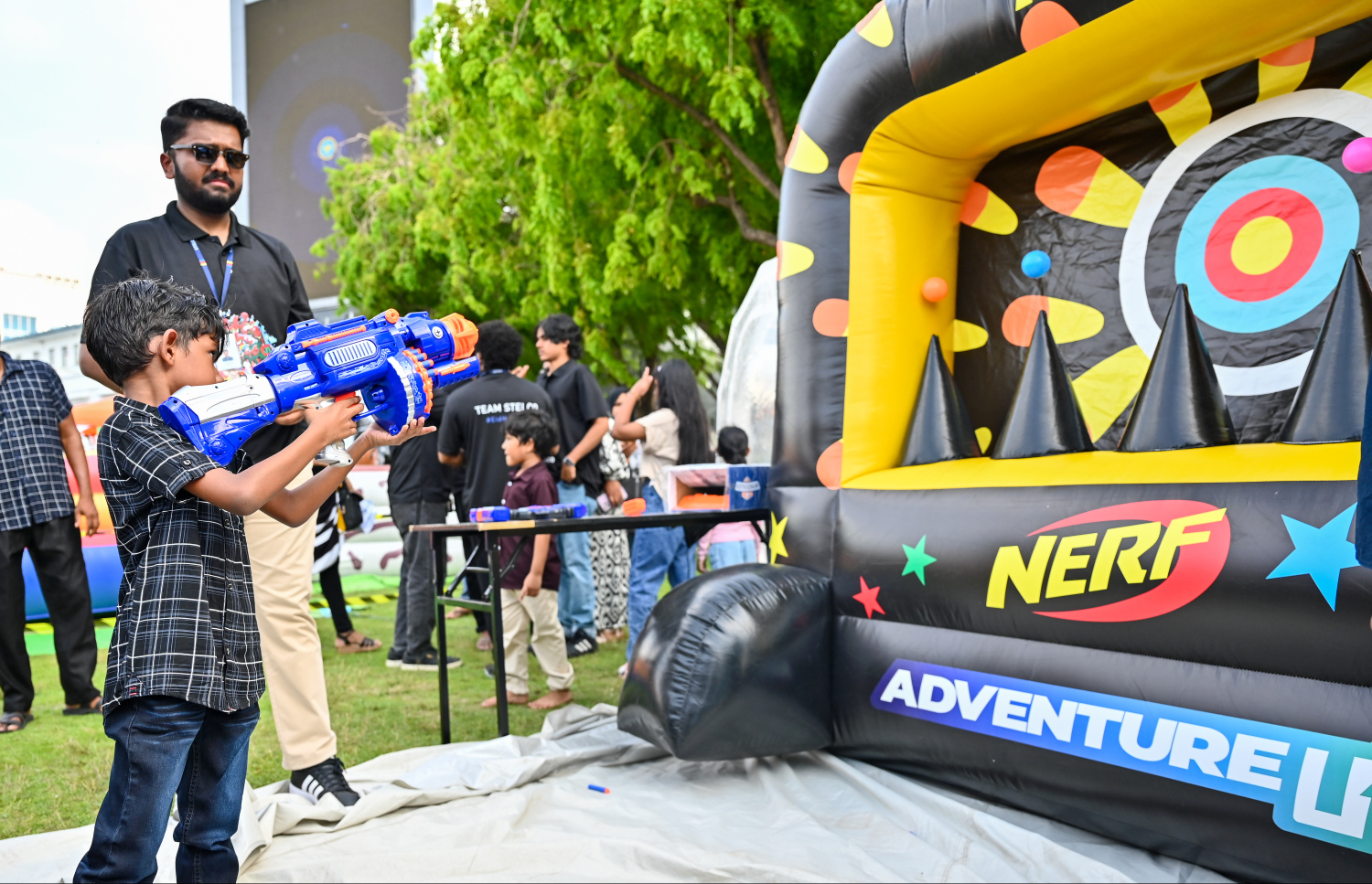 A child playing a nerf game at the Eid Evening -- Photo: Fayaz Moosa | Mihaaru