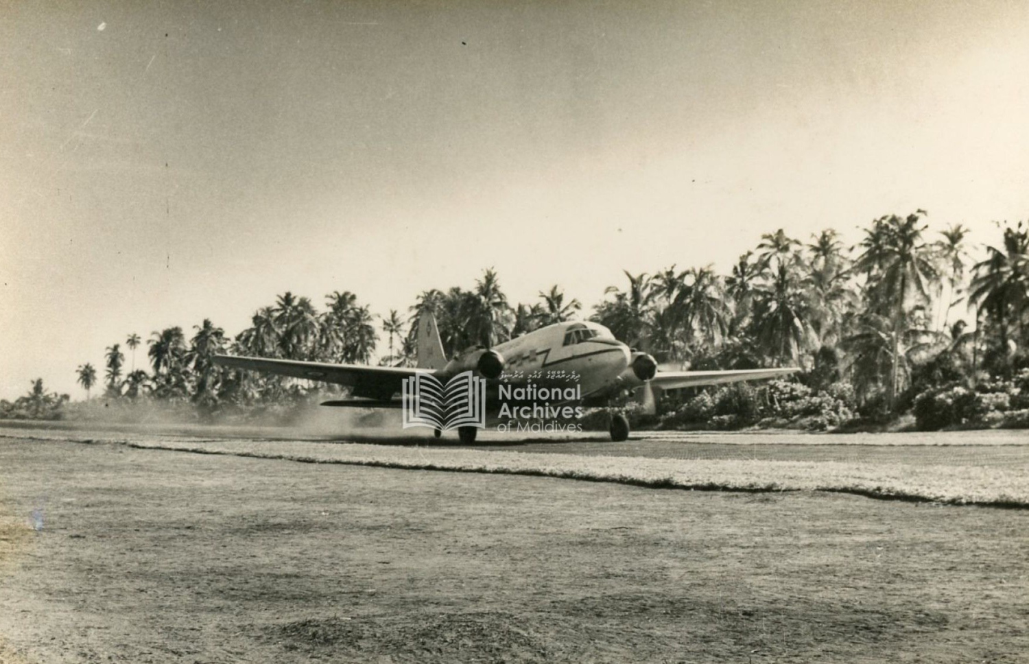 The first plane to land at the British-built station in Hulhule, landing there: The British taking control of this station was the main reason Maldives wanted to build its own airport. -- Photo: National Archives of Maldives