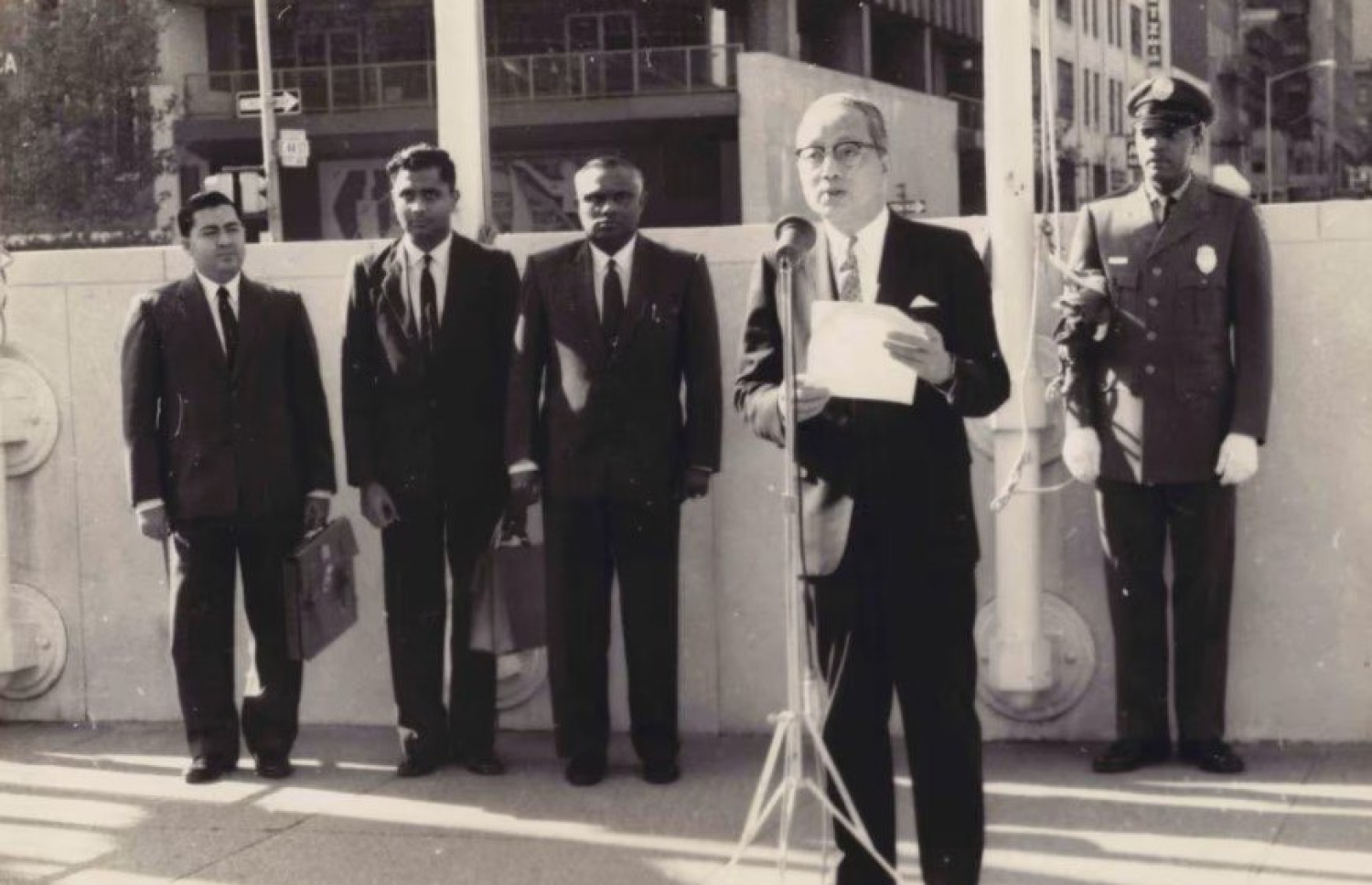At the ceremony of granting Maldives membership in the United Nations, the then Secretary General of the Organization, U Thant, speaks: Maldives joined the United Nations after gaining independence from the British. -- Photo: National Archives of Maldives