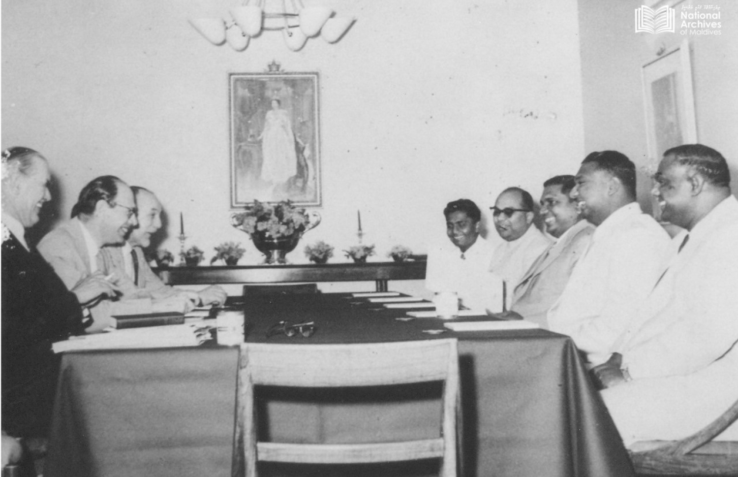 Maldives Prime Minister Ibrahim Nasir and ministers meet with British representatives in Sri Lanka: Discussions for Maldives independence were held in Colombo, the capital of Sri Lanka –- Photo: National Archives of Maldives