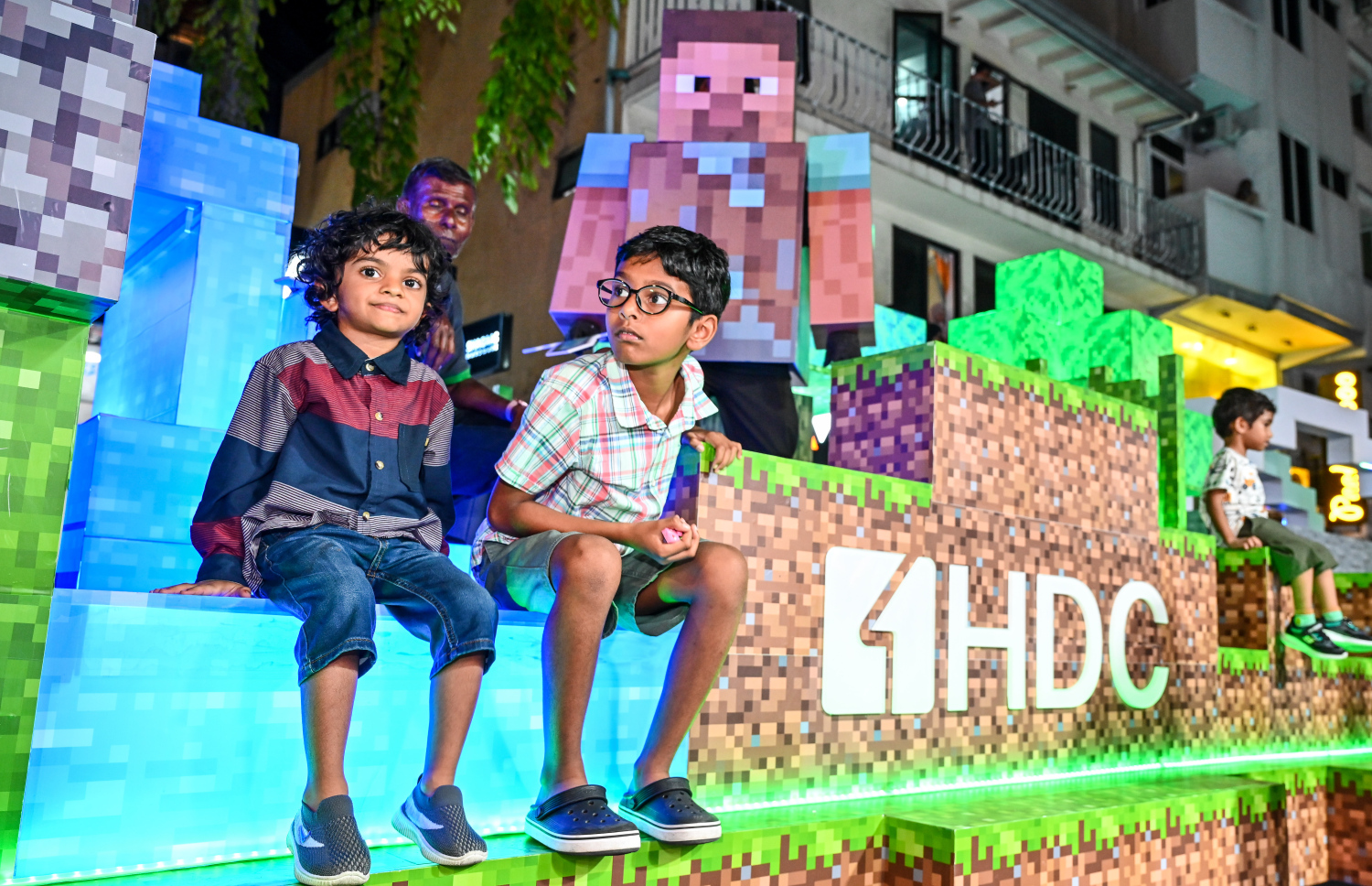 HDC's Minecraft themed float carrying kids along -- Photo Credit: Fayaz Moosa, Mihaaru