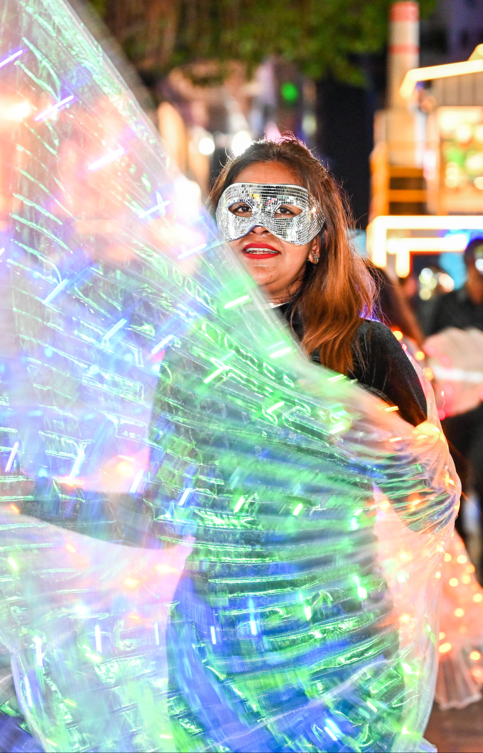 A STELCO employee in fashionable attire ahead of their float -- Photo Credit: Fayaz Moosa, Mihaaru