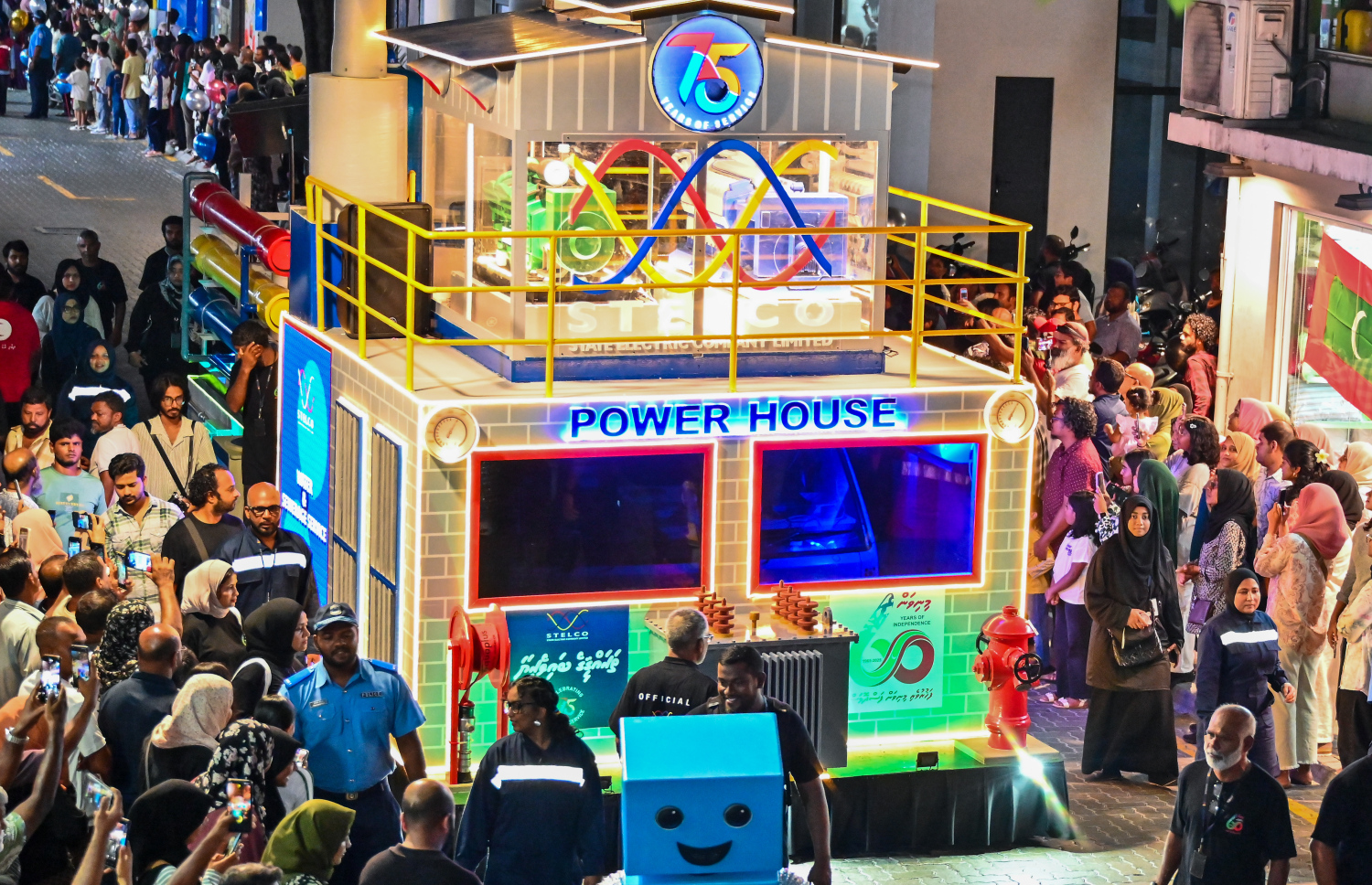 STELCO's powerhouse themed float riding through the streets -- Photo Credit: Fayaz Moosa, Mihaaru