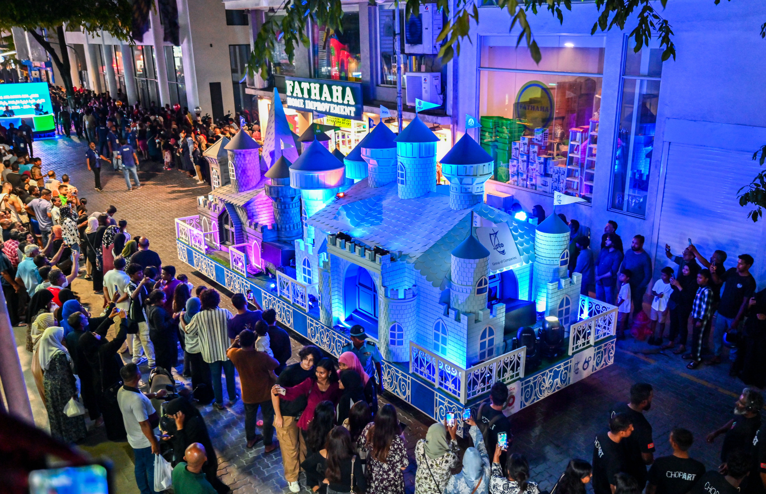 STO's castle float riding through Majeedhee Magu -- Photo Credit: Fayaz Moosa, Mihaaru