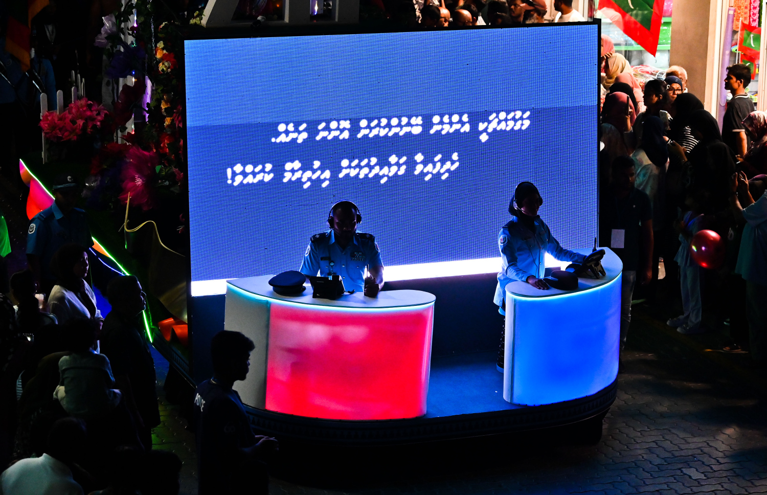 Maldives Police Services' float showcasing important information for the people -- Photo Credit: Fayaz Moosa, Mihaaru