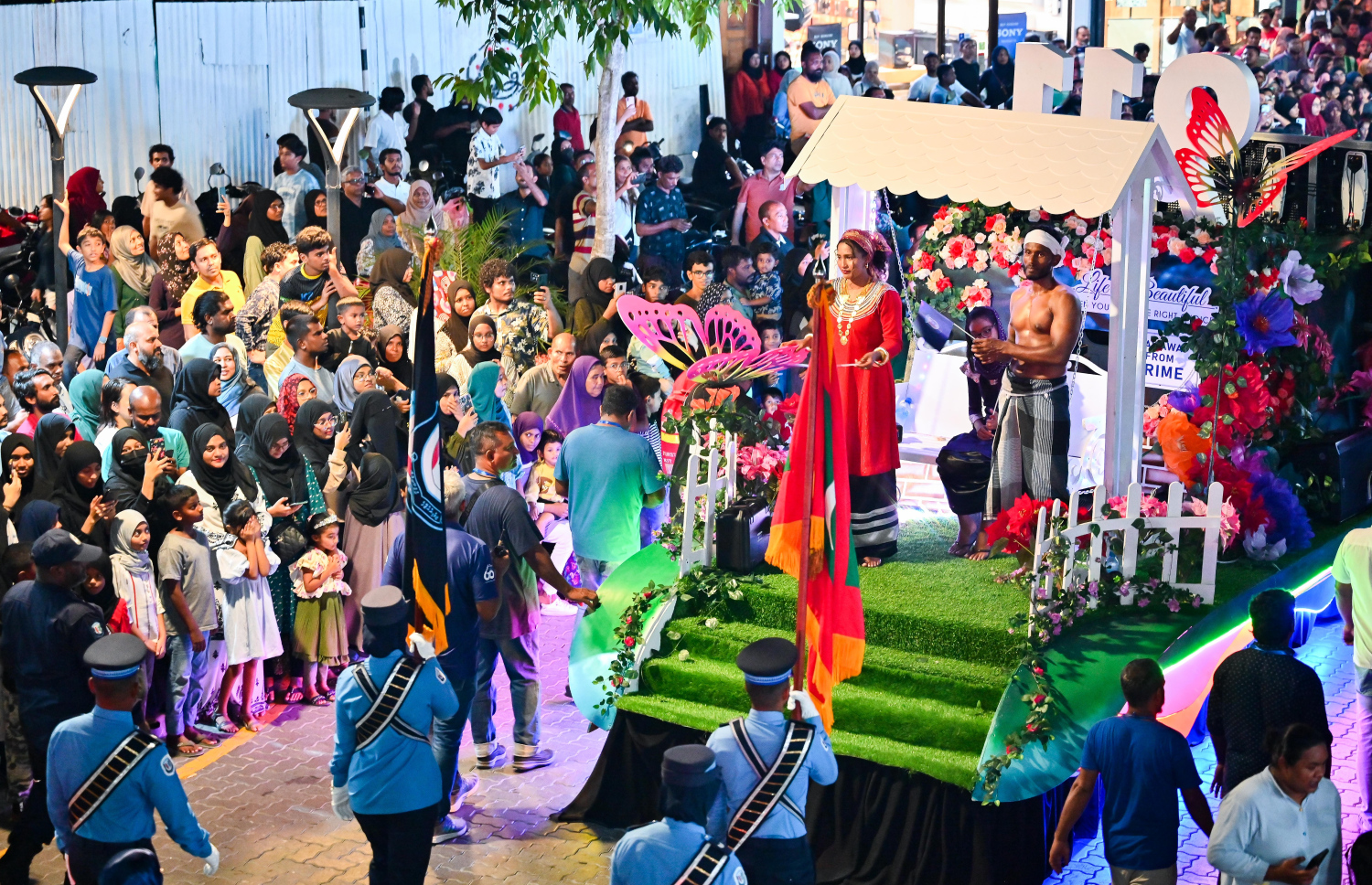 Citizens gathering on Majeedhee Magu to watch the parade and floats -- Photo Credit: Fayaz Moosa, Mihaaru