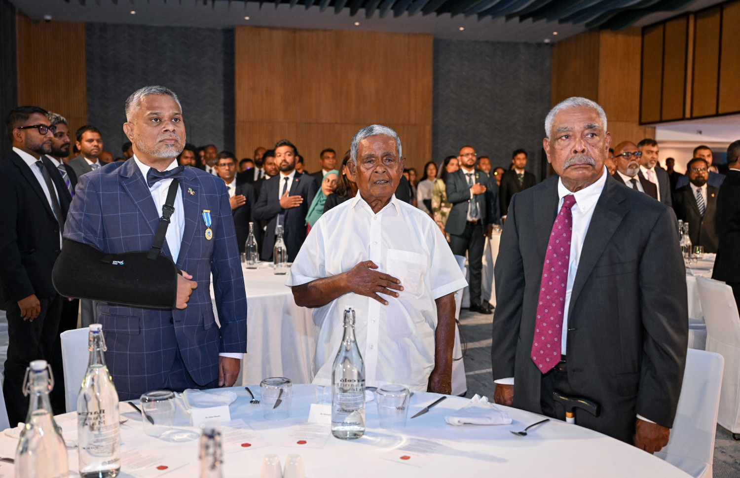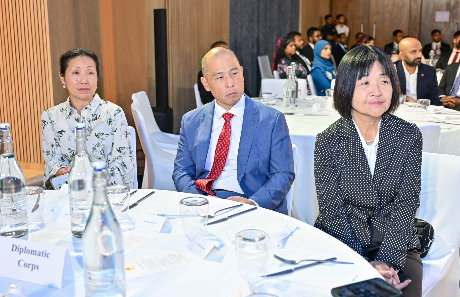 Champa Mohamed Moosa (Uchchu), Champa Hussain Afeef, and Prosecutor Abbas Sharif attend the ceremony to mark China's 79th National Day.