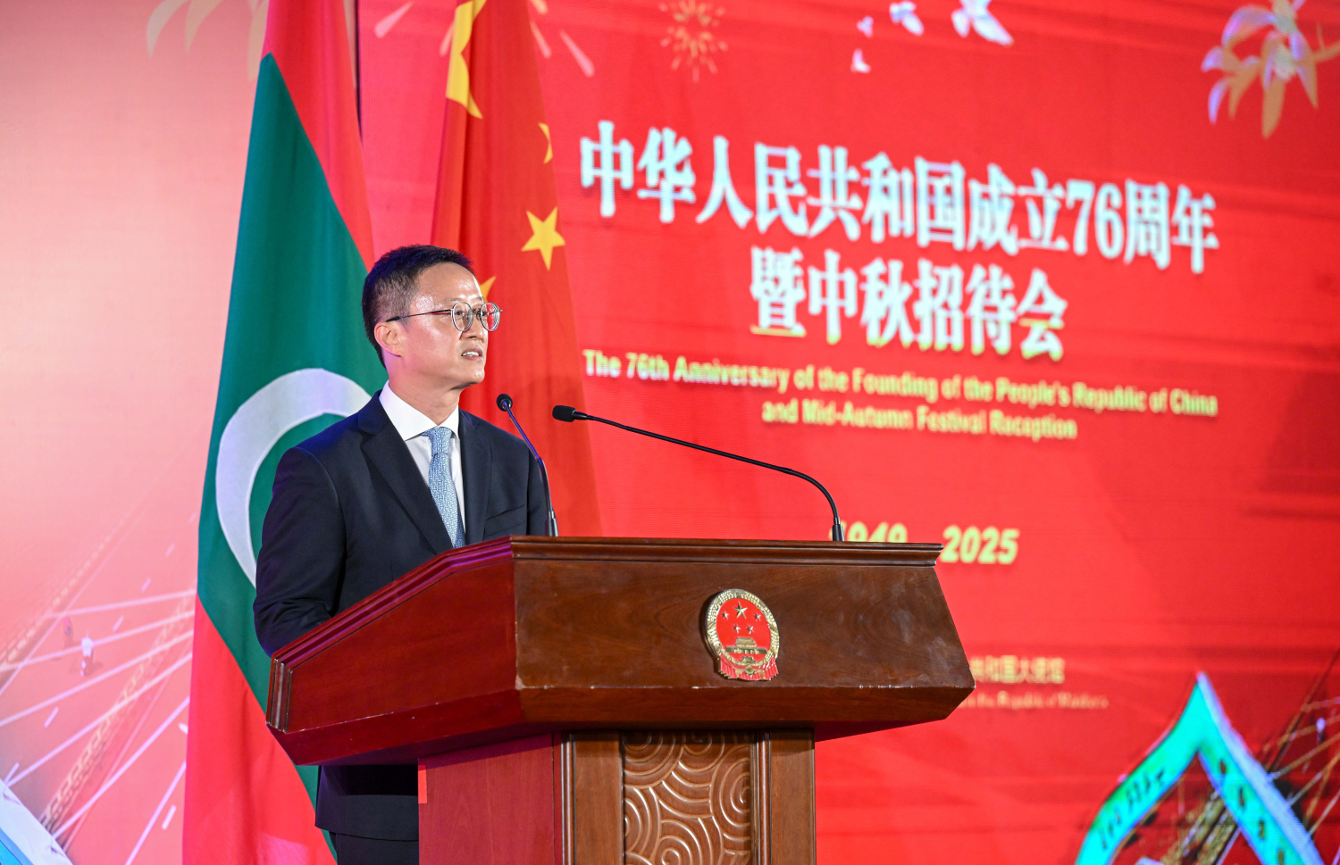 During China's National Day celebrations President Dr. Mohamed Muizzu speaks --- Photo/President's Office
