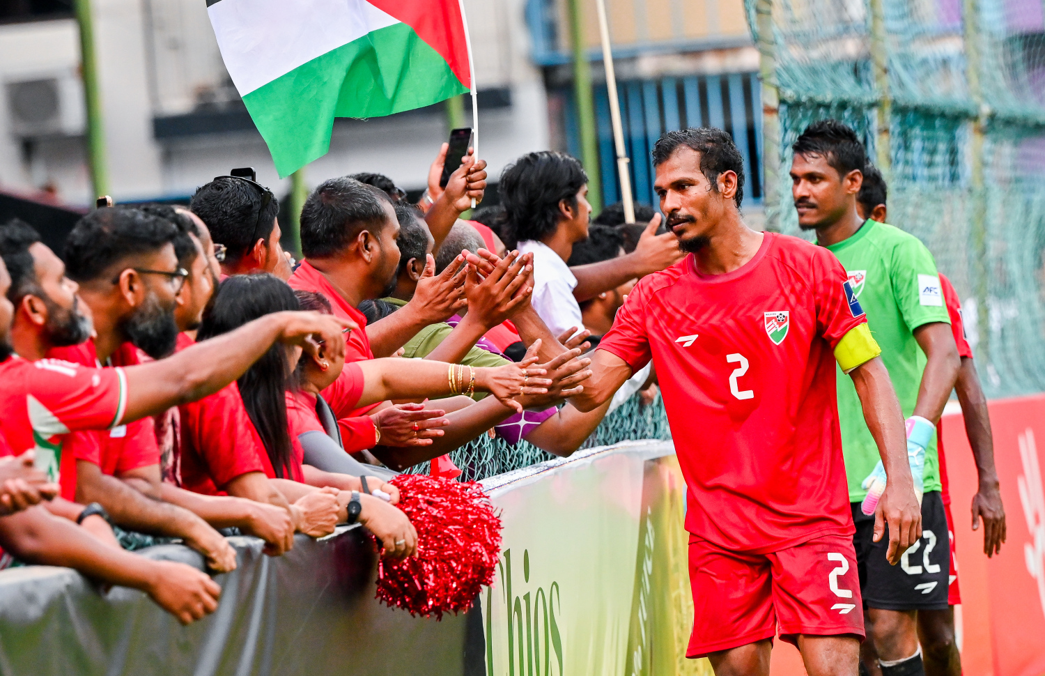 Maldives players thanking supporters after their 3-0 loss against Tajikistan -- Photo: Fayaz Moosa | Mihaaru