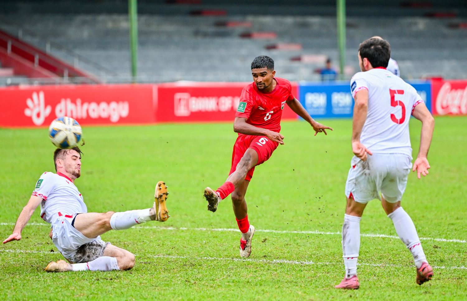 The Maldives vs Tajikistan match during the Asian Cup qualifiers -- Photo: Fayaz Moosa | Mihaaru