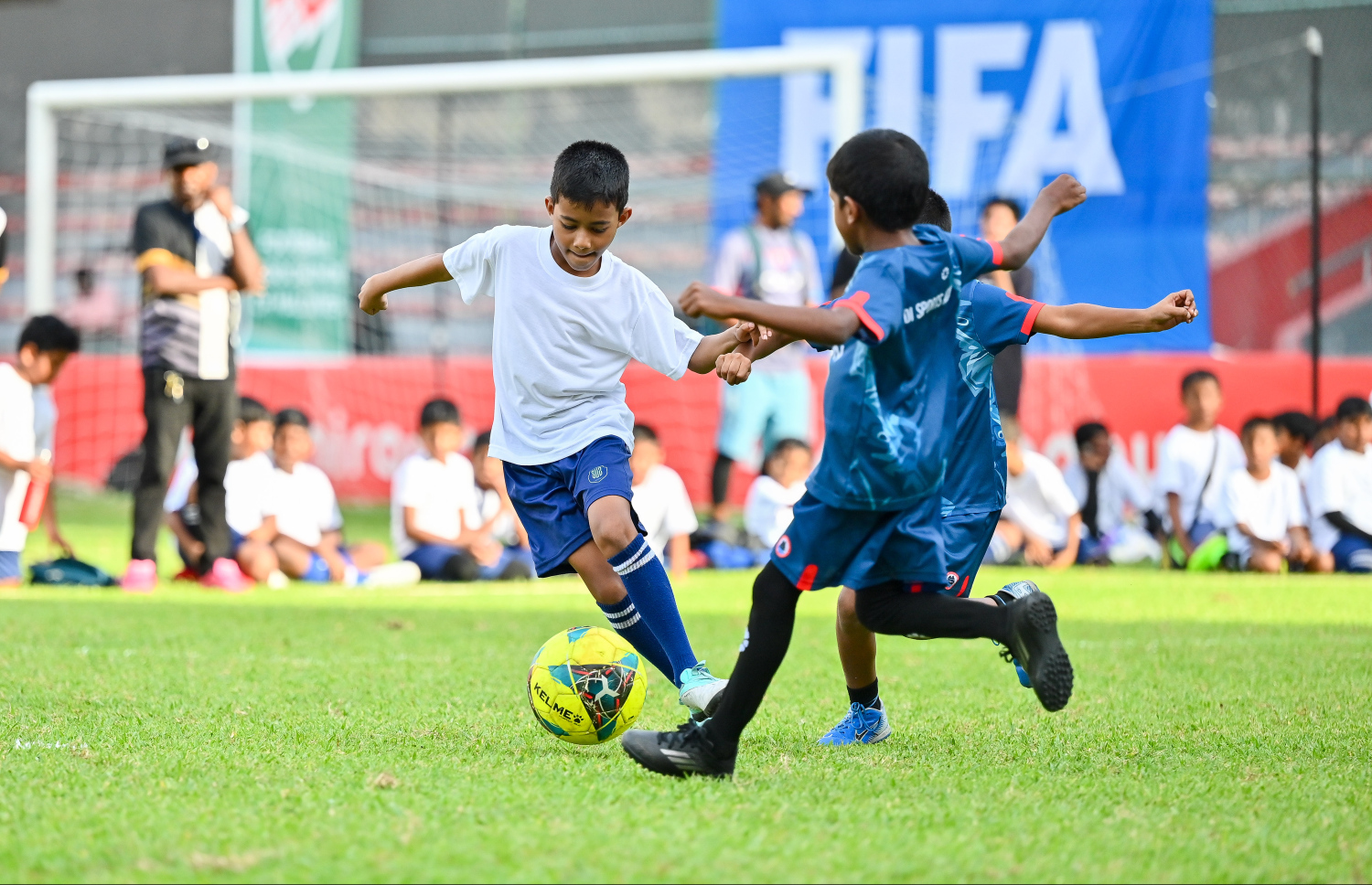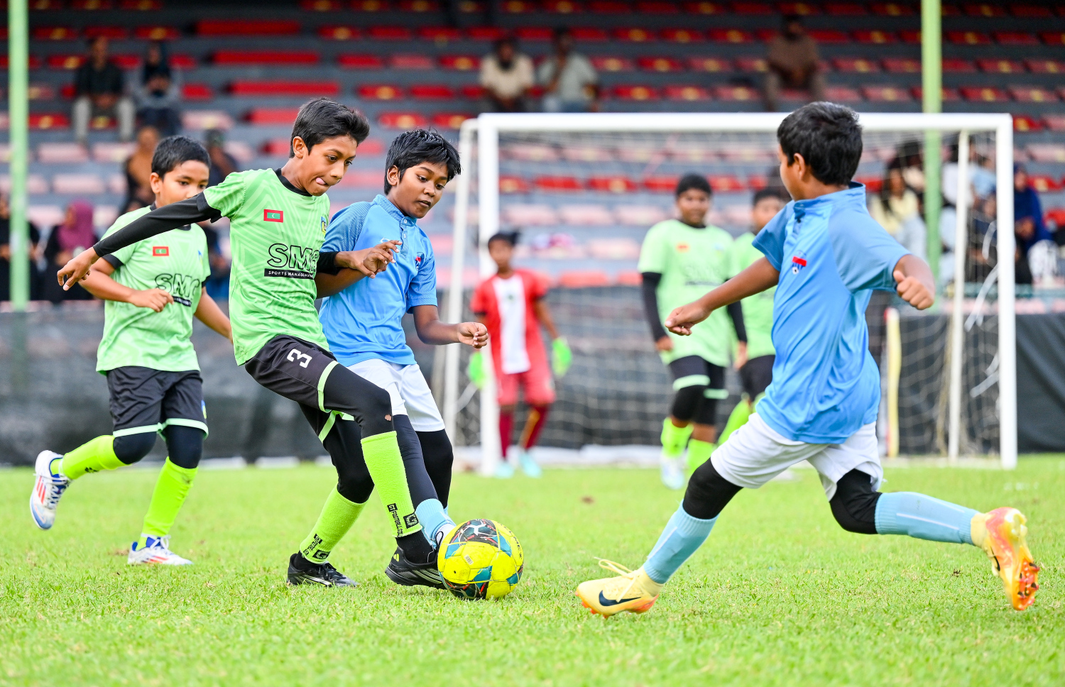 A football match between children from various academies during the football exhibition in honor of FIFA President. - Photo: Fayaz Moosa | Mihaaru