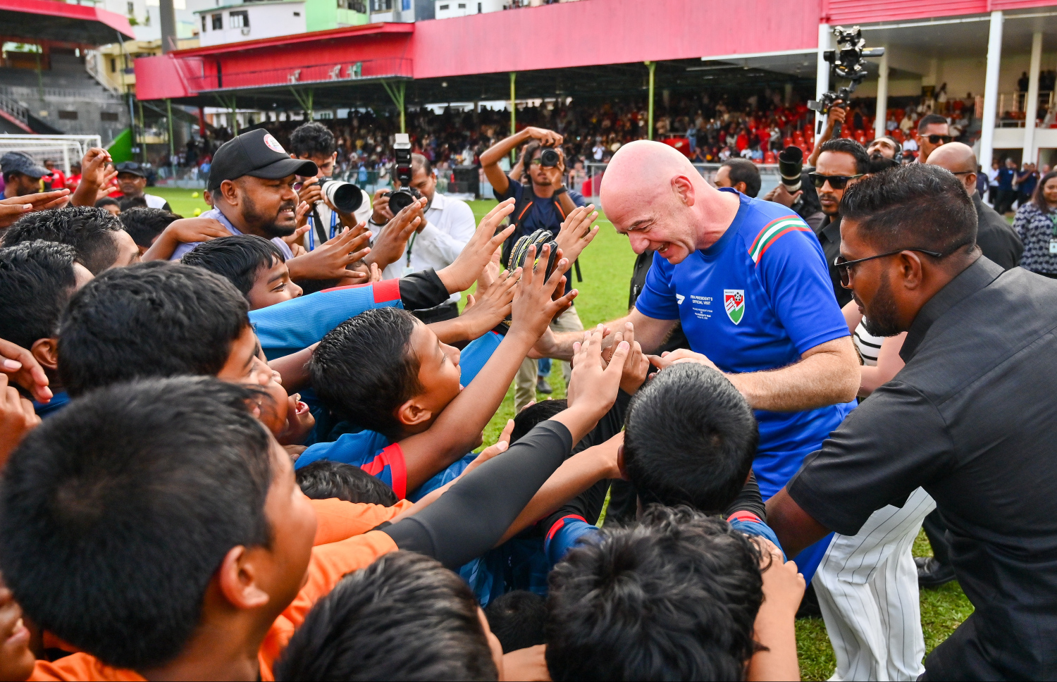 President Dr. Muizzu and FIFA President Infantino participating in today's event. --- Photo: Fayaz Moosa | Mihaaru
