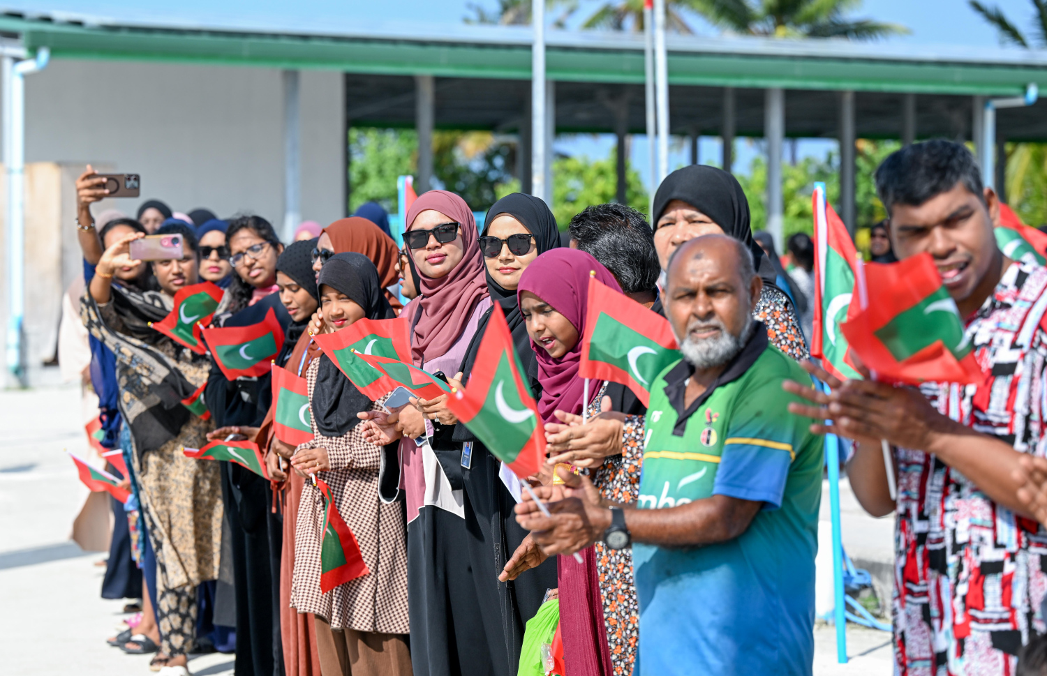 President Muizzu being welcomed by residents of Lh. Olhuvelifushi -- Photo: President's Office