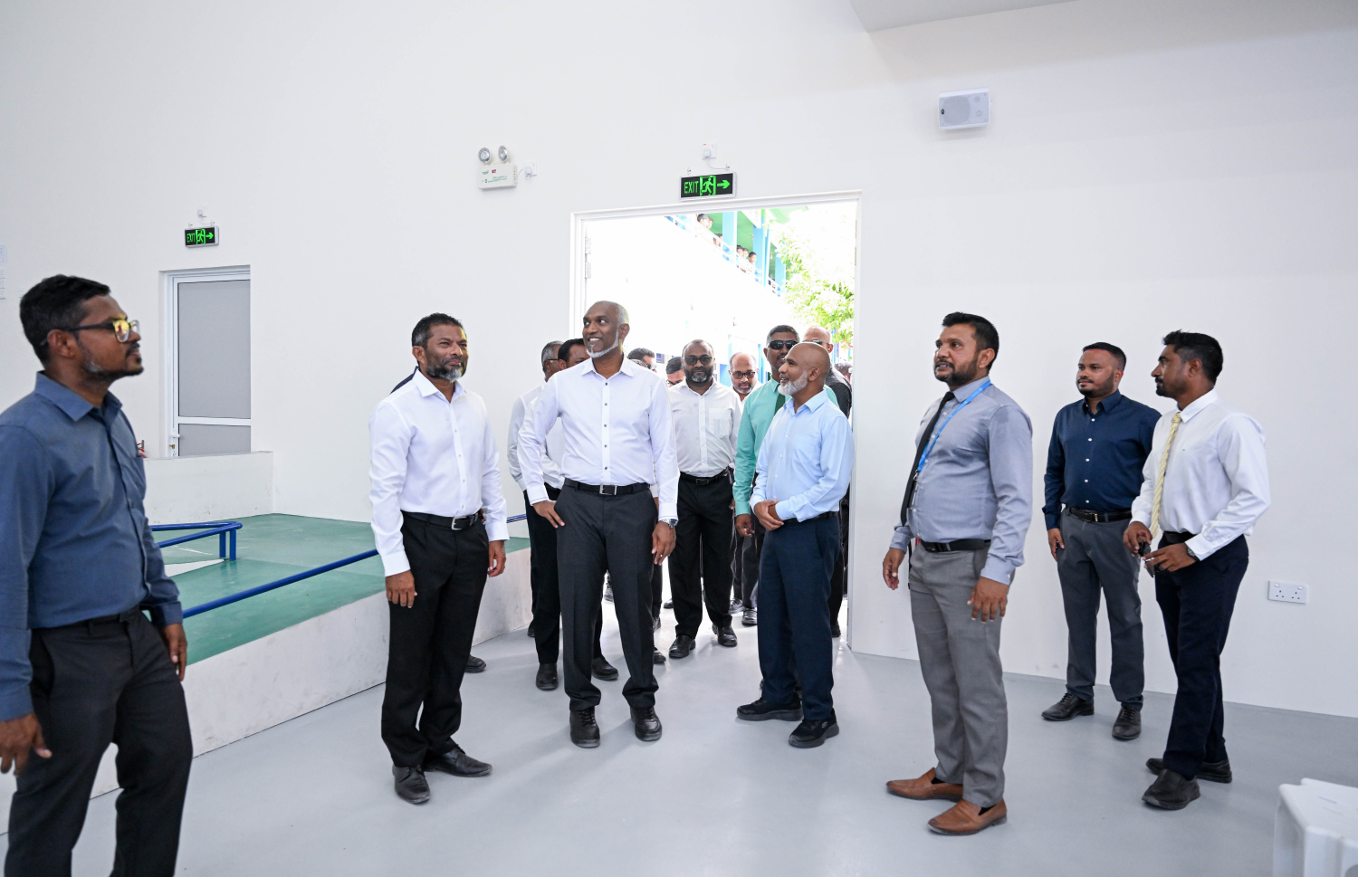President Muizzu being given a tour of the Lh. Atoll school's multipurpose hall after its inauguration -- Photo: President's Office