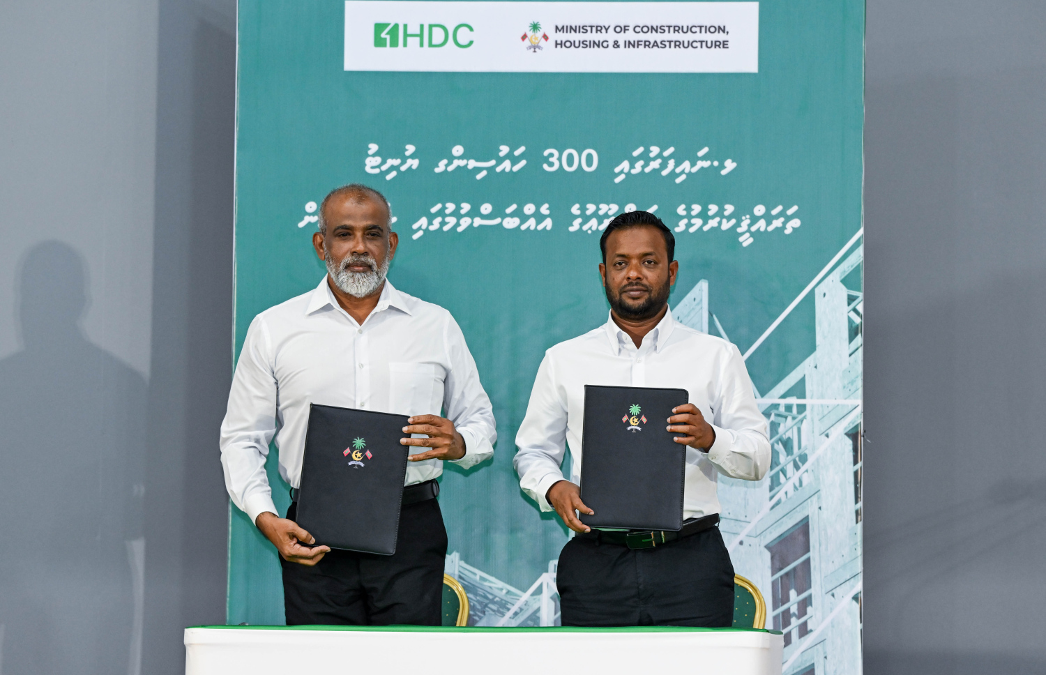 Housing Ministry and HDC signing the Lh. Naifaru 300 housing unit project agreement -- Photo: President's Office