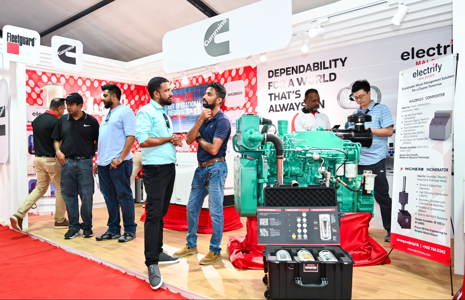 Exhibition-goers at a stall showcasing engines at the TechEng 2025 Exhibition -- Photo: Fayaz Moosa | Mihaaru
