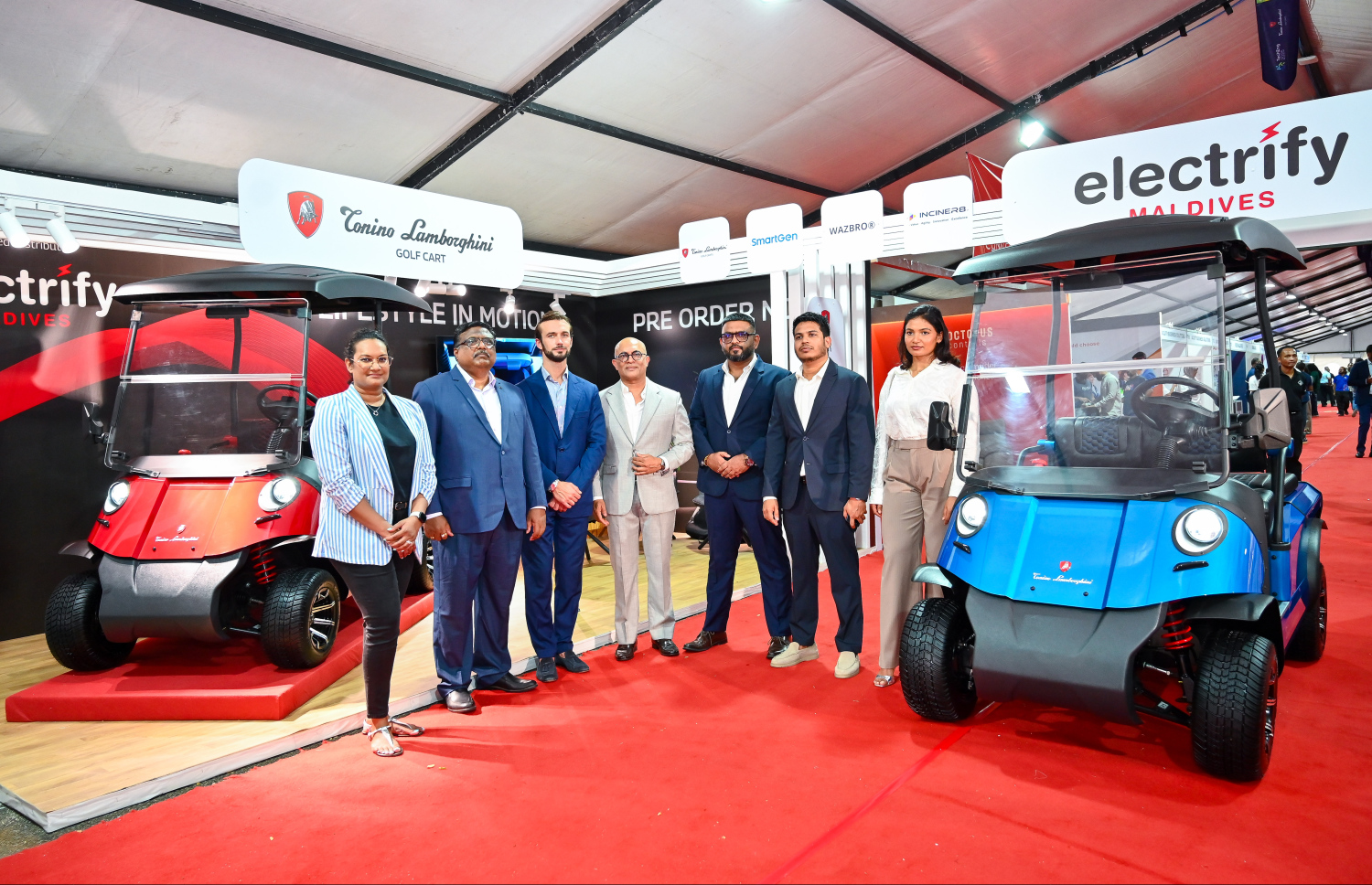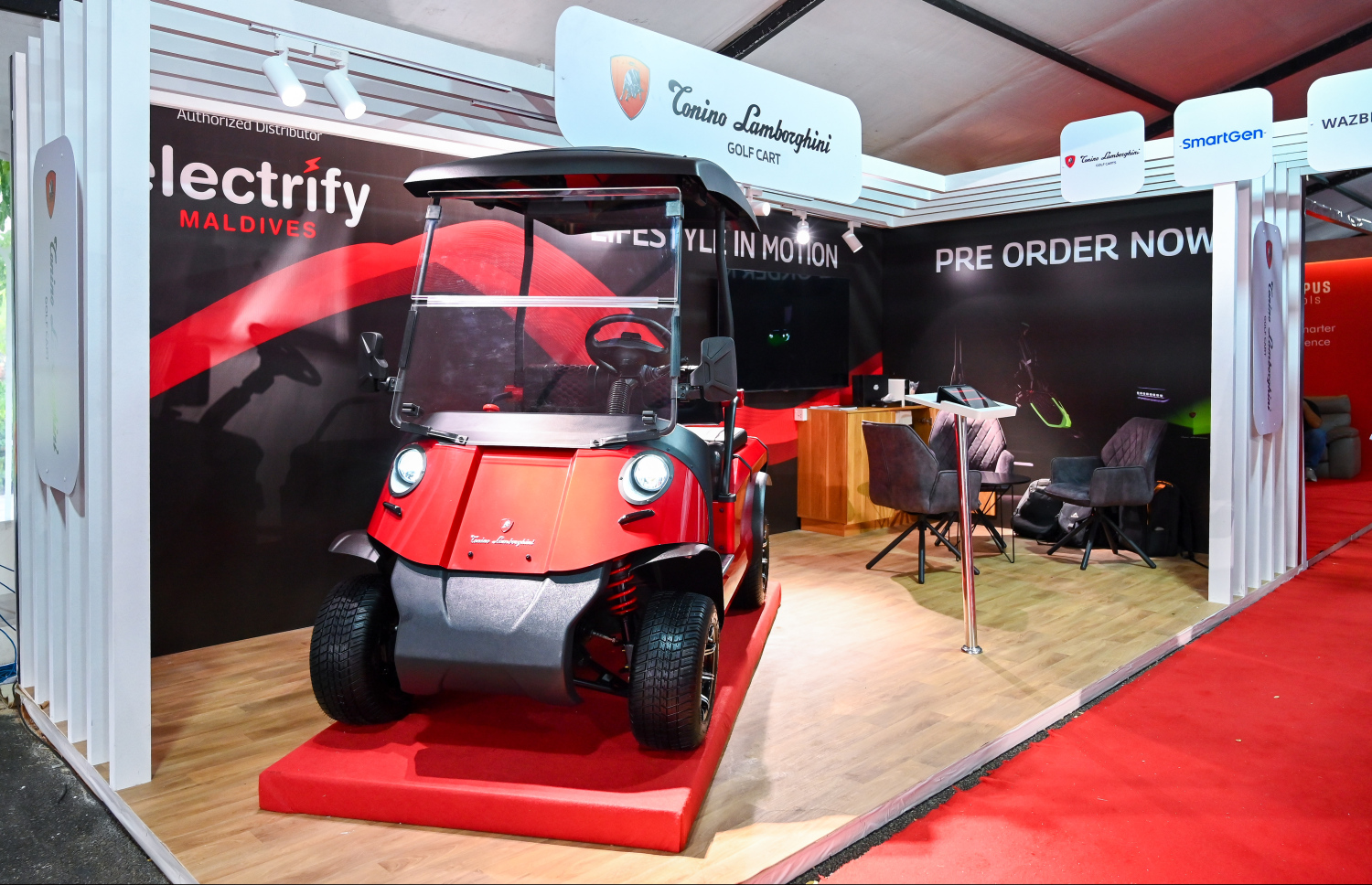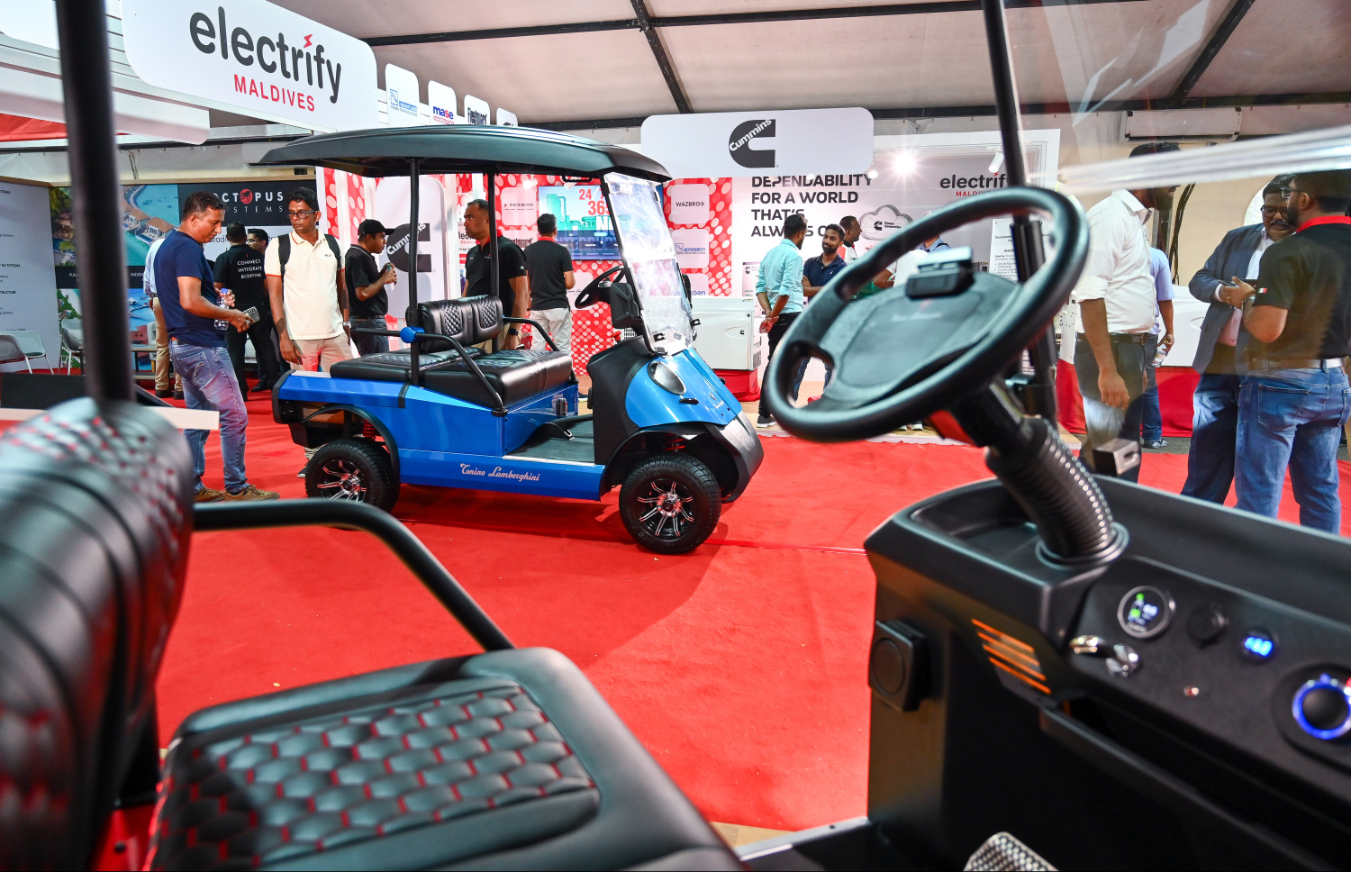 Tonino Lamborghini Electronic Golf Carts being officially introduced to Maldives at the TechEng 2025 Exhibition -- Photo: Fayaz Moosa | Mihaaru