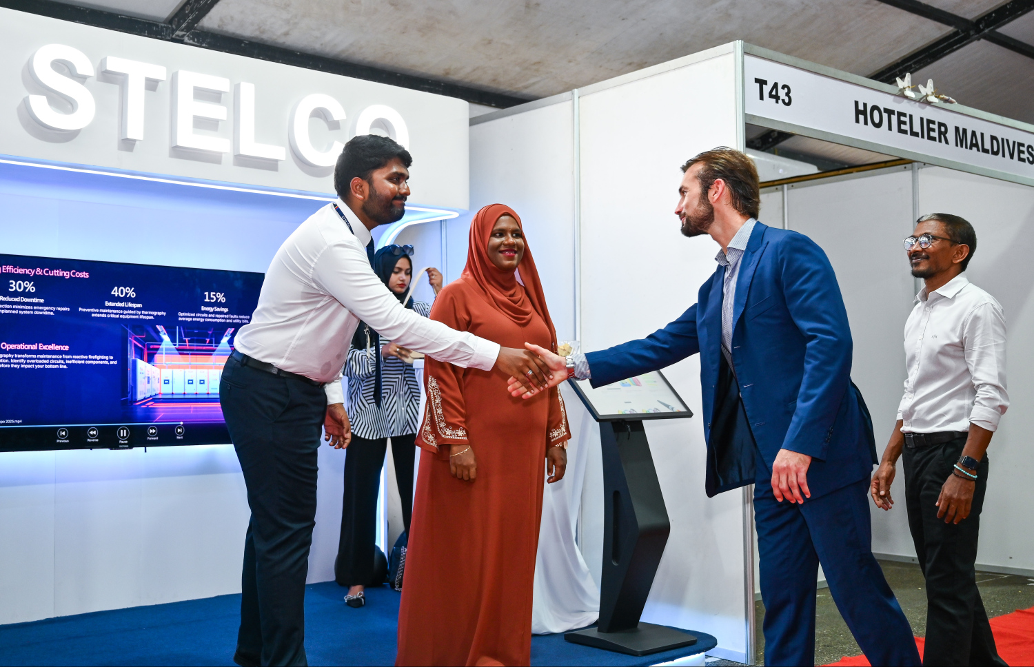 Vice President of Lamborghini Ferruccio Lamborghini visiting the STELCO stall at the TechEng 2025 Exhibition -- Photo: Fayaz Moosa | Mihaaru
