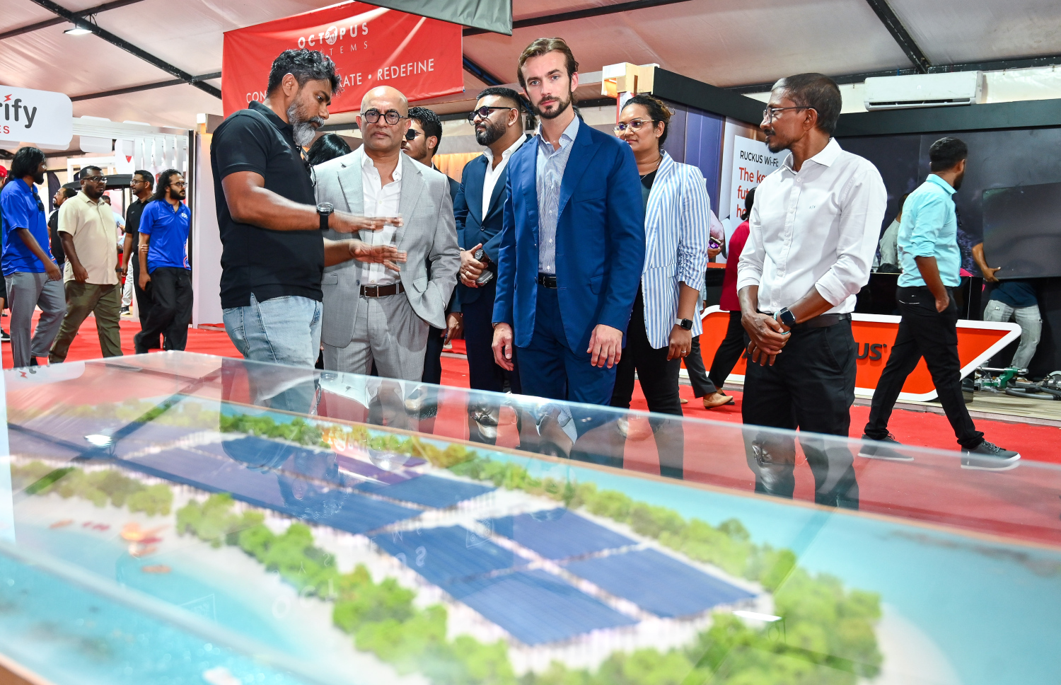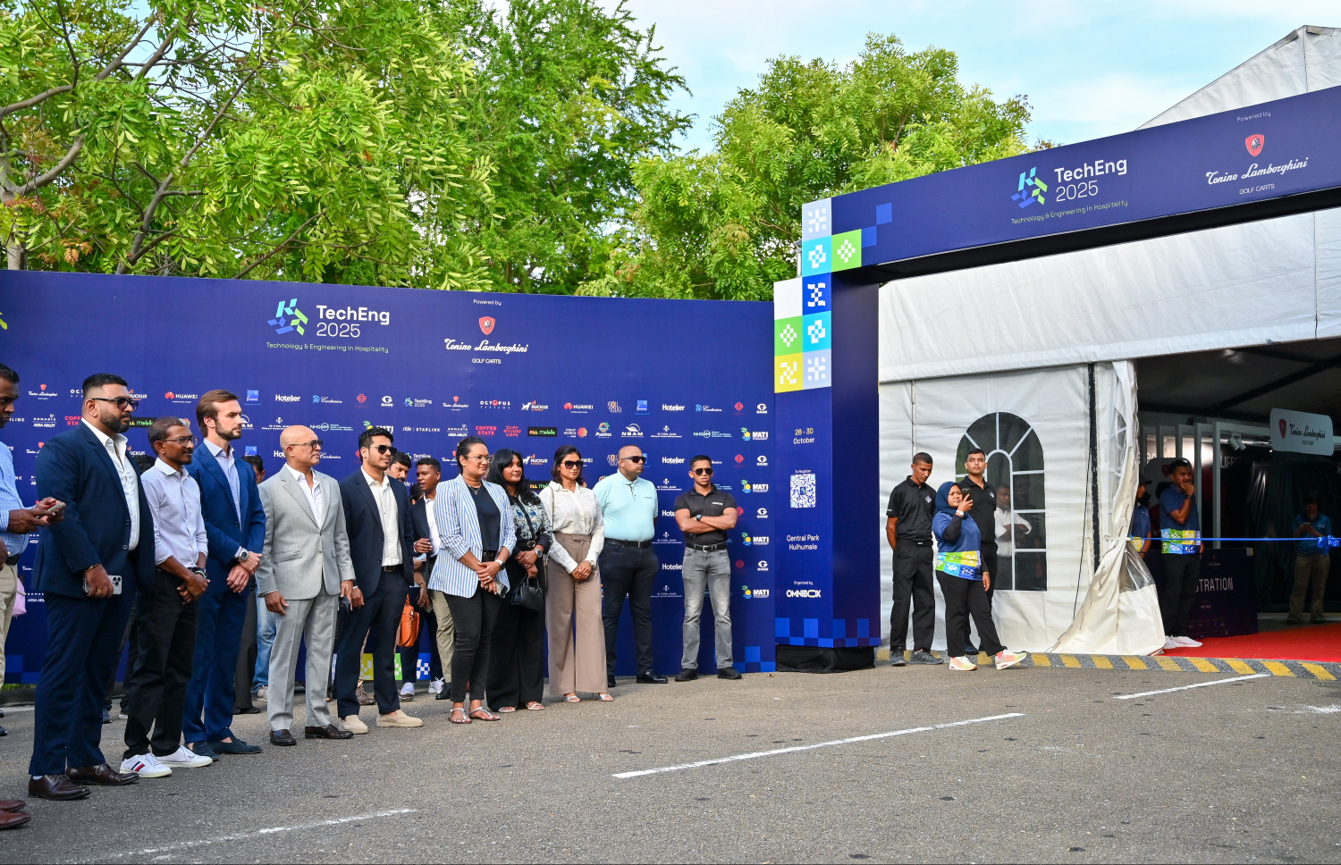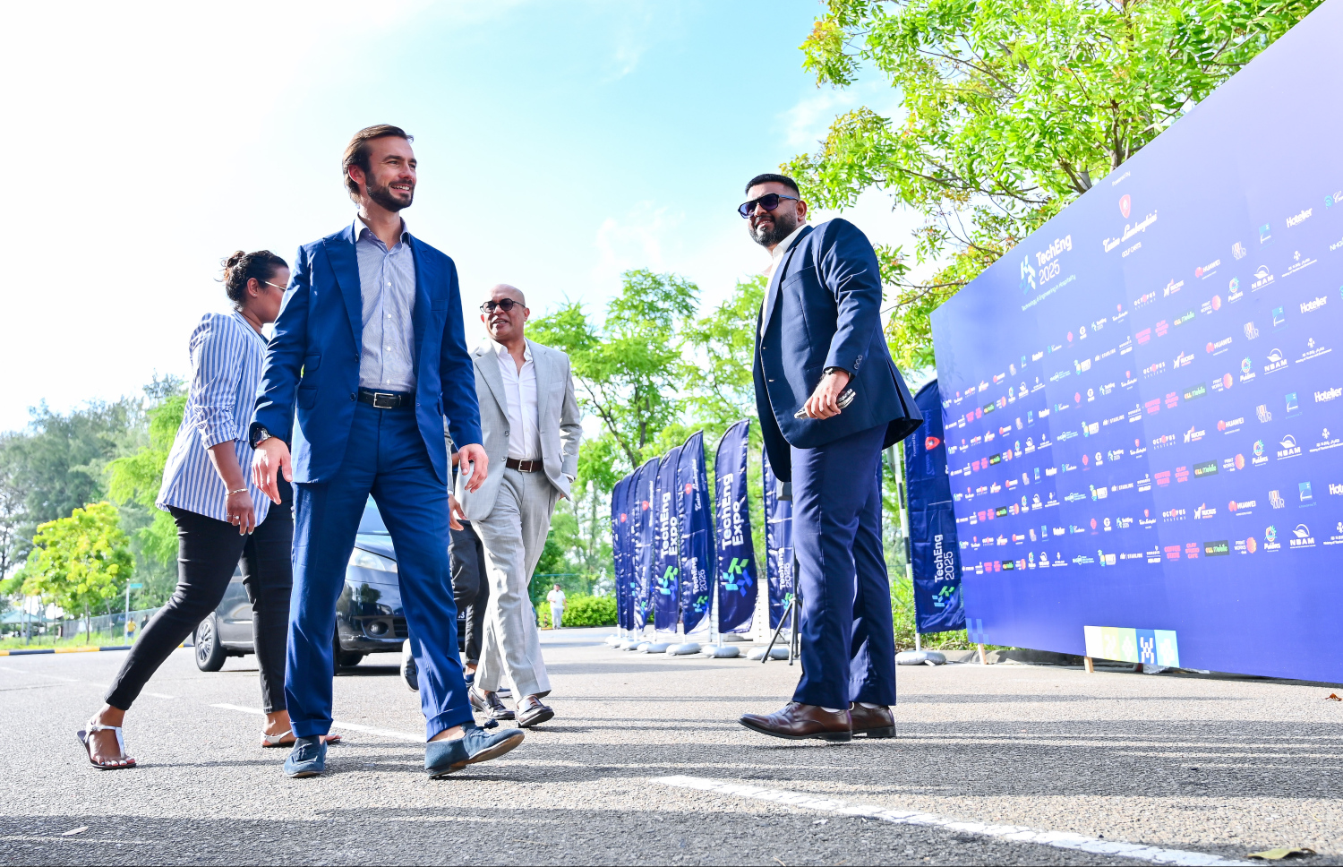 Vice President of Lamborghini Ferruccio Lamborghini and Electrify Maldives seniors at the TechEng 2025 Exhibition -- Photo: Fayaz Moosa | Mihaaru