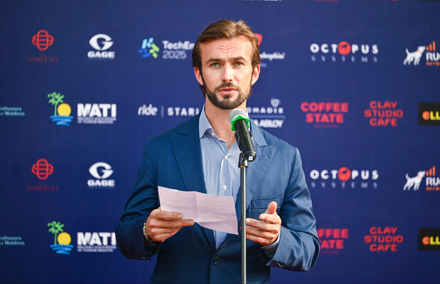 Vice President of Lamborghini Ferruccio Lamborghini speaking at the opening ceremony of the TechEng 2025 Exhibition -- Photo: Fayaz Moosa | Mihaaru