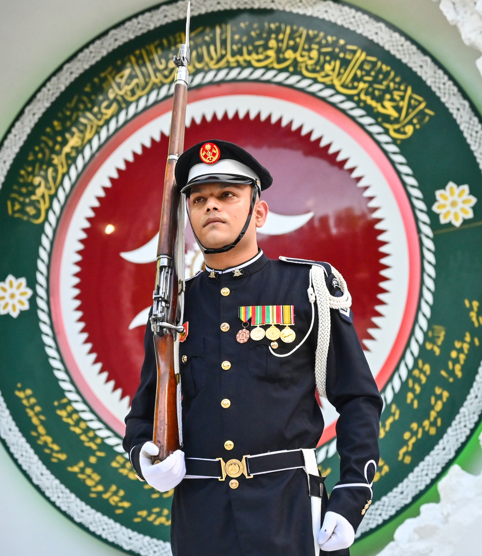 Guard mounting ceremony at the flag raising, guard mounting ceremony at the Victory Monument for Victory Day -- Photo: Fayaz Moosa | Mihaaru