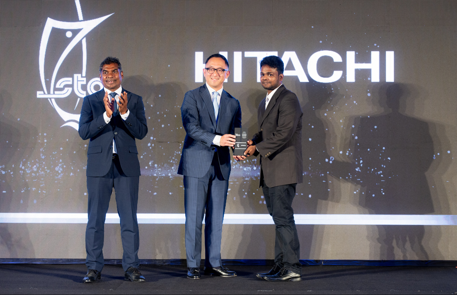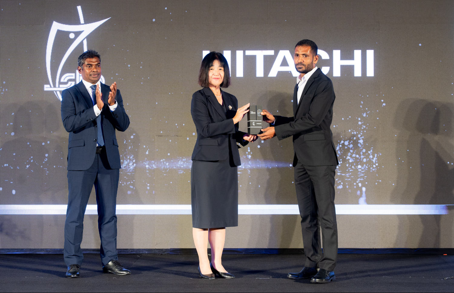 One of the customers who had bought the highest number of Hitachi products being given an award as acknowledgement -- Photo: Nishan Ali | Mihaaru